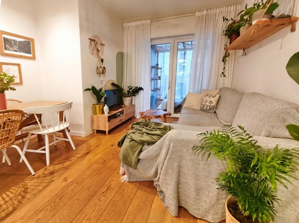 Z salonu wyjście na zadaszony, urządzony taras oraz ogródek o łącznej powierzchni ok. 30 m² – idealne miejsce na poranną kawę, odpoczynek lub spotkania w gronie bliskich.