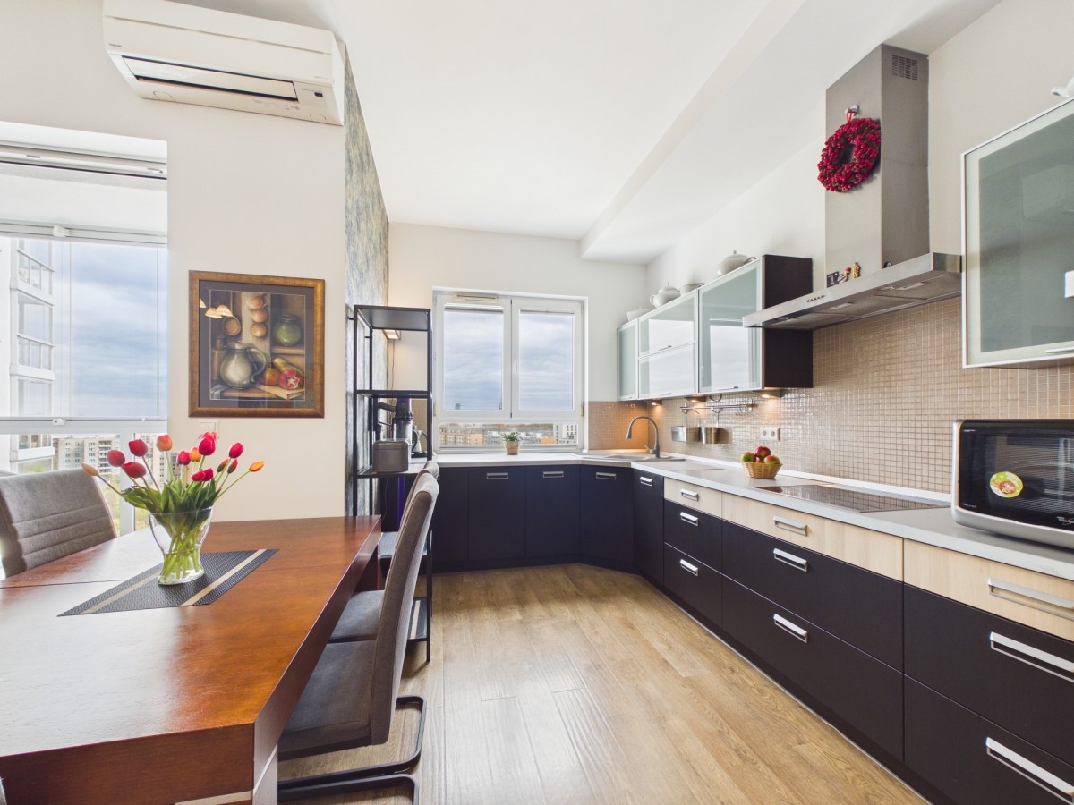 Wchodzisz do w pełni umeblowanego, klimatyzowanego wnętrza, które jest gotowe na Twój styl życia od pierwszego dnia. Salon z aneksem kuchennym tworzy elegancką, otwartą przestrzeń do życia, wypoczynku i pracy, a oddzielna sypialnia również z miejscem do pracy zapewnia prywatność i regenerację. Loggia z miejscem do siedzenia jest prywatną strefą relaksu z fantastycznym widokiem na miasto.
