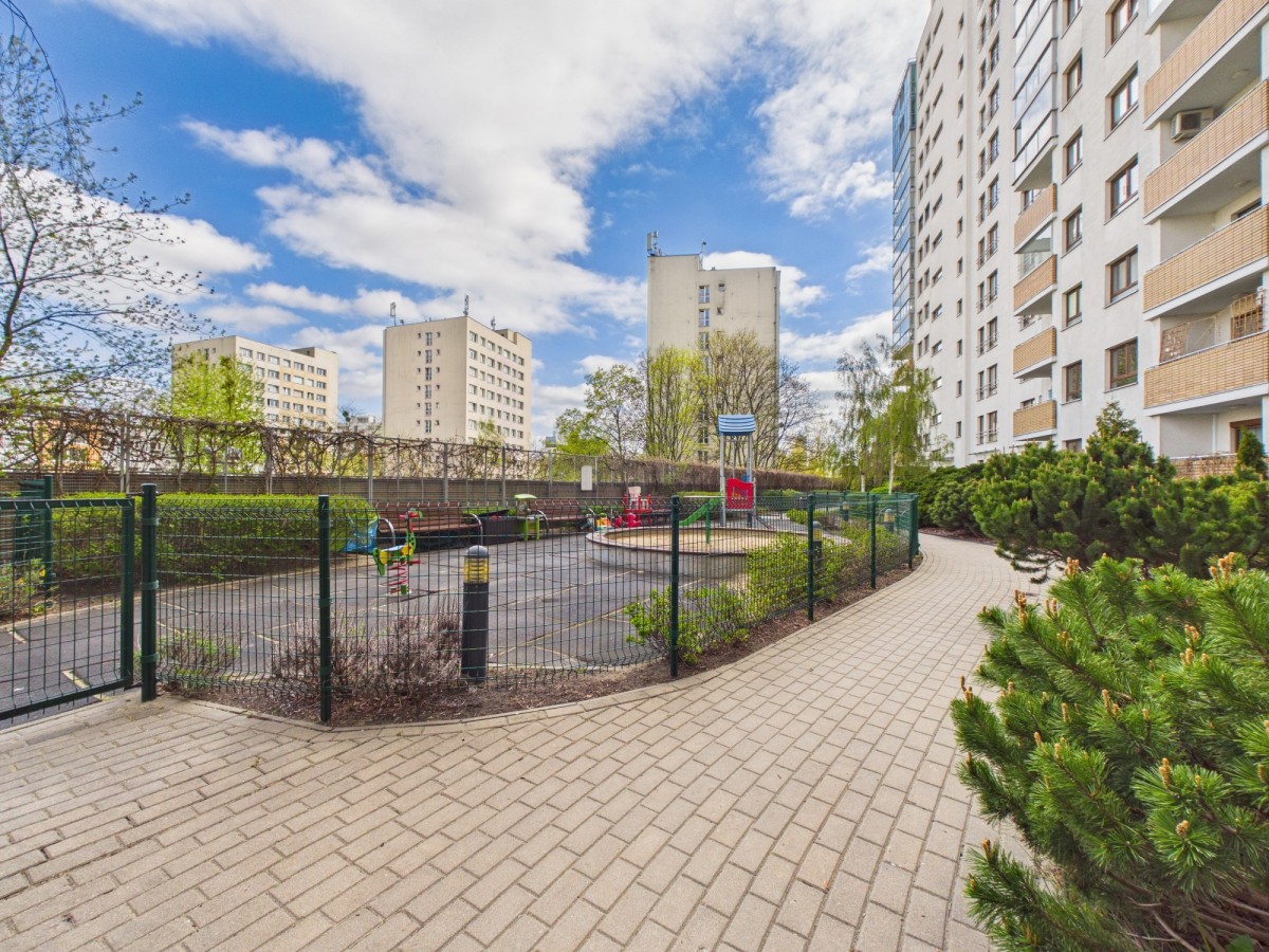 Na co dzień korzystasz z wygód, które naprawdę mają znaczenie: garaż podziemny, winda, ogrodzony teren, plac zabaw, ogródek i zadbana przestrzeń wspólna. A kiedy chcesz wyjść – najlepsze zakupy, restauracje i usługi masz dosłownie pod ręką: Dom Mody Klif tuż obok i Westfield Arkadia w zasięgu krótkiego spaceru. Blisko też kultowa Hala Mirowska – świeże produkty, warzywa, owoce, mięso, ryby i delikatesy