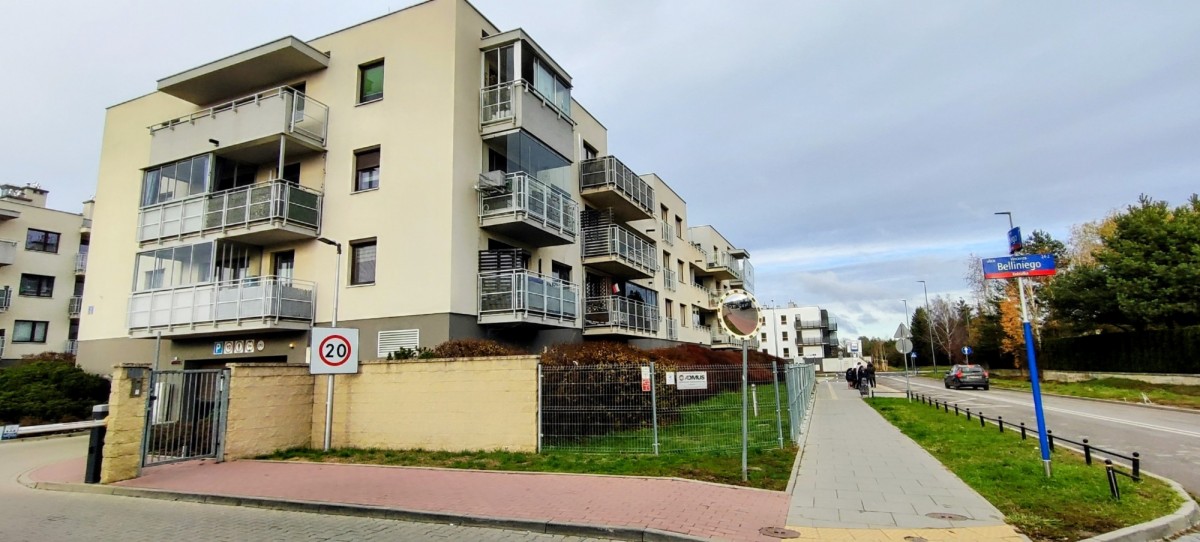 Dwupokojowe, bardzo zgrabne mieszkanie z dużym balkonem w dobrej lokalizacji, przy ulicy Belliniego, na warszawskim Osiedlu Zielona Dolina II.