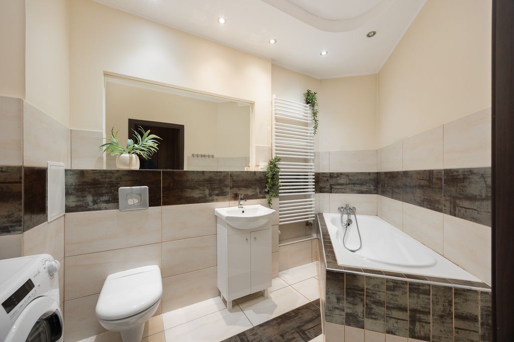 Wysokość pomieszczeń wynosi ok. 270 cm, co daje poczucie przestrzeni. Okna PCV. Na podłogach panele oraz gres. Kuchnia wyposażona w sprzęty AGD (m.in. lodówka, płyta grzewcza). Mieszkanie sprzedawane jest z umeblowaniem.