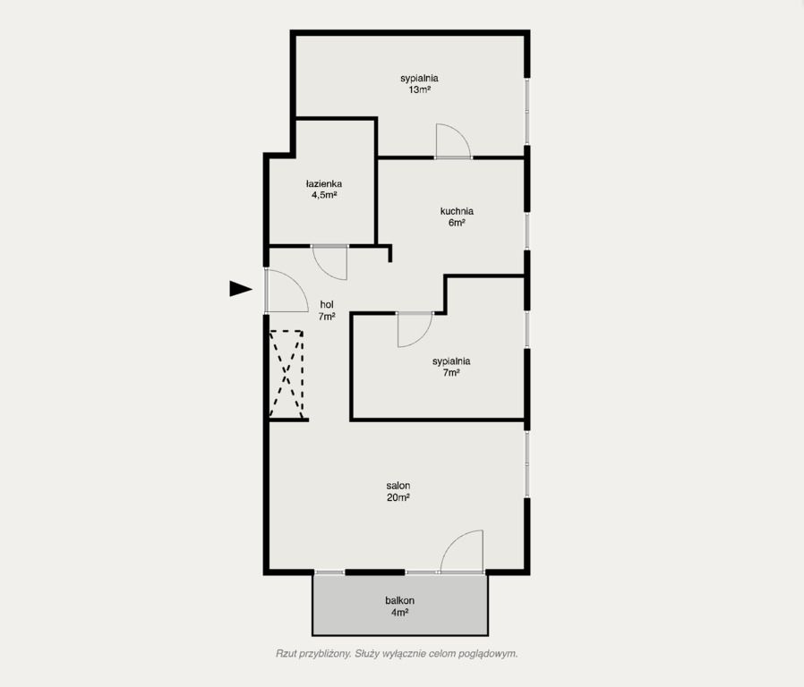 Dodatkowe pomieszczenia: balkon ok. 4 m², komórka lokatorska 2,3 m².