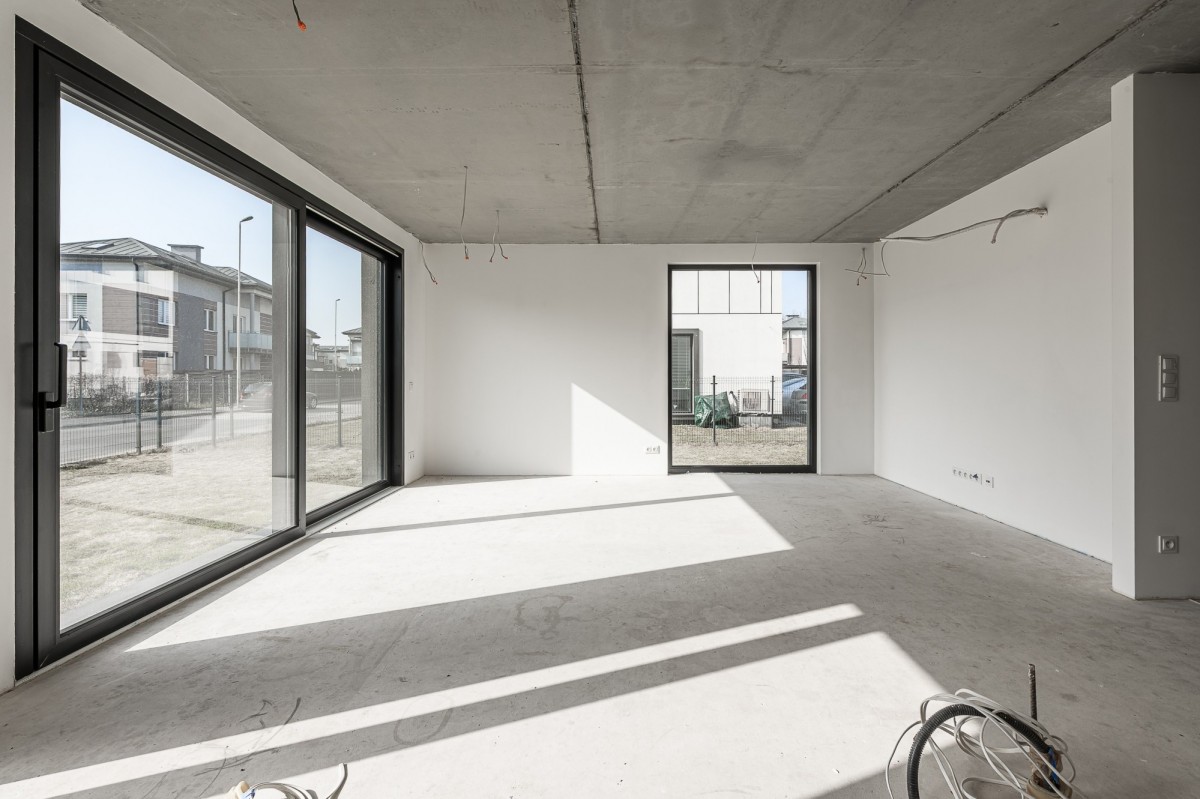 Na parterze znajduje się przestronna strefa dzienna z salonem, jadalnią oraz otwartą kuchnią. Duże przeszklenia HS zapewniają doskonałe doświetlenie wnętrza (ekspozycja południowa) i bezpośrednie wyjście do ogrodu.