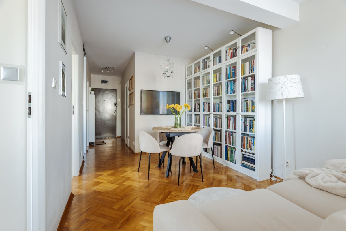 Na sprzedaż przytulne i bardzo funkcjonalne mieszkanie o powierzchni 58,3 m², położone na 1 piętrze w budynku z windą przy ul. Książkowej 9F na warszawskich Nowodworach.