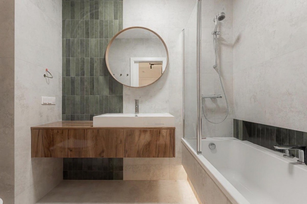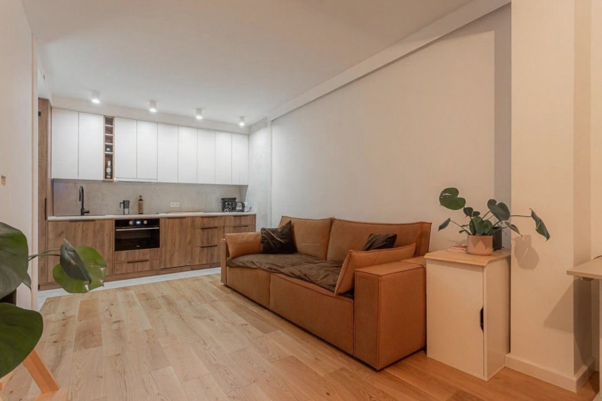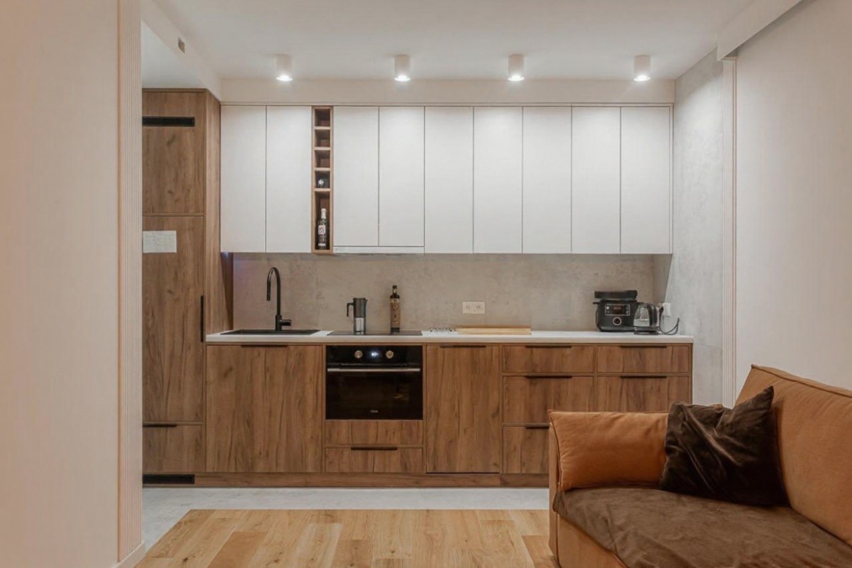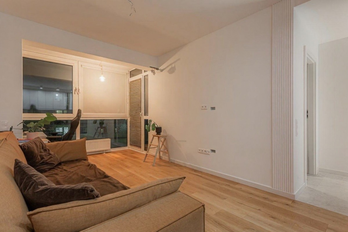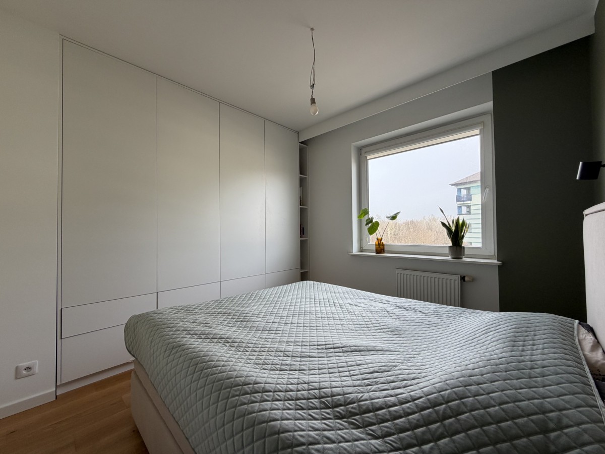 Mieszkanie przeszło generalny remont w 2024 roku – wymieniono instalacje wodno-kanalizacyjne i elektryczne, wykonano nowe podłogi, gładzie oraz zabudowy stolarskie na wymiar. Projekt został przygotowany we współpracy z architektem.