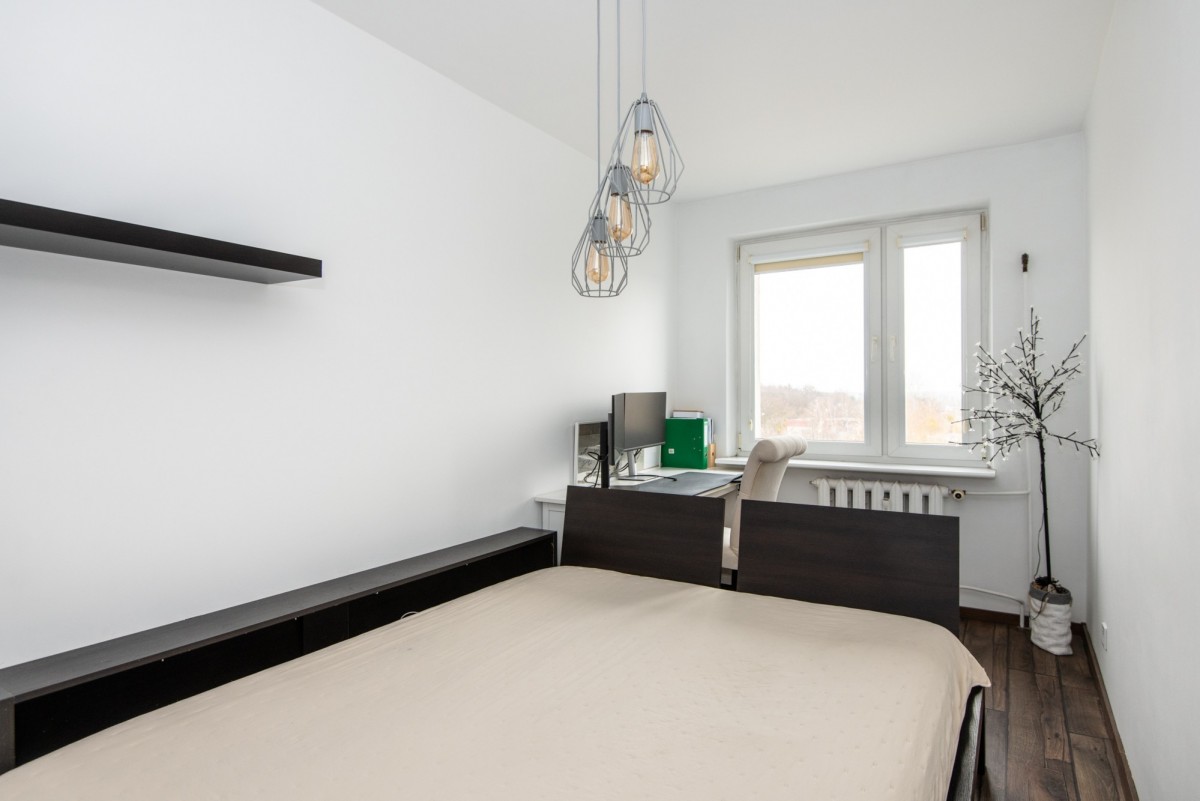 Lokal jest dwustronny i słoneczny, co zapewnia doskonałe doświetlenie przez cały dzień. Układ z sypialnią dostępną z salonu pozwala na funkcjonalne wydzielenie prywatnej strefy wypoczynkowej, przy zachowaniu dwóch pozostałych, w pełni niezależnych pokoi. Usytuowanie na ostatnim, czwartym piętrze zapewnia ciszę nad głową, prywatność oraz niczym niezakłócony widok na osiedlową zieleń.