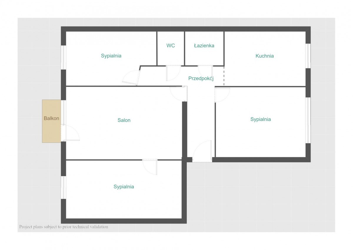 ● salonu z wyjściem na balkon – ok. 15,2 m²;
