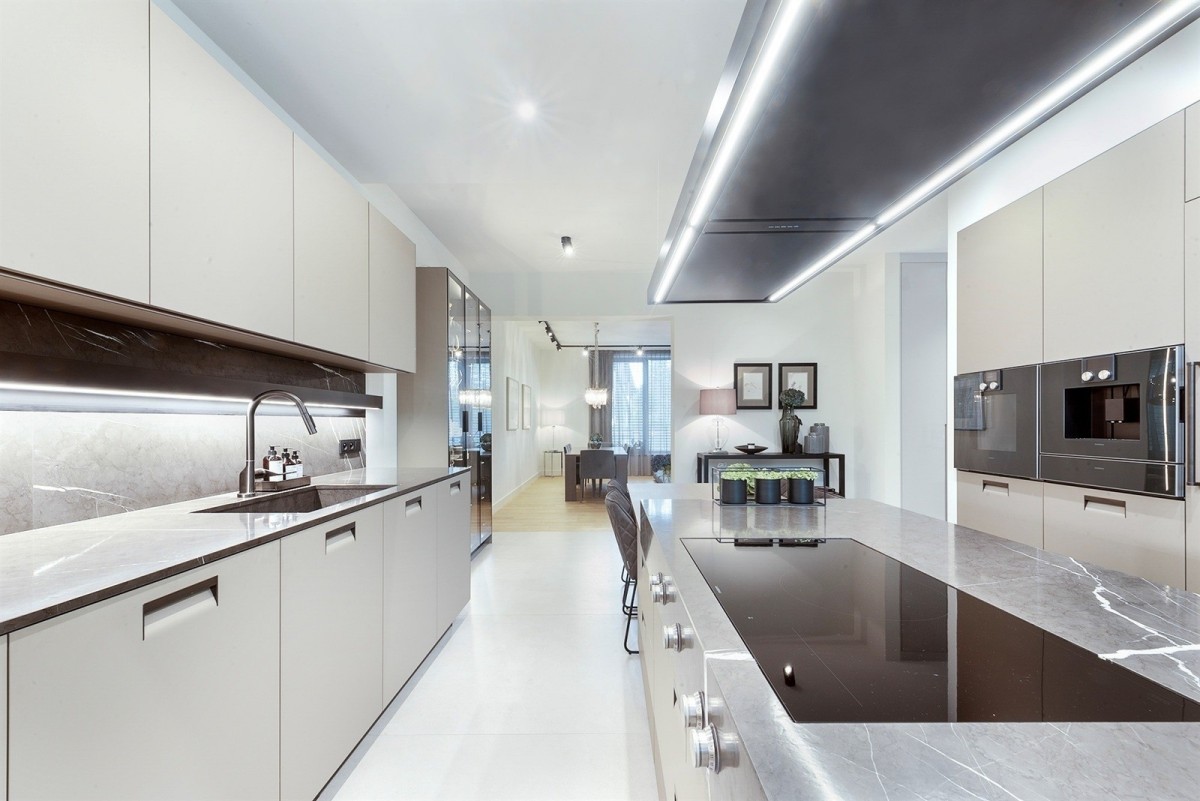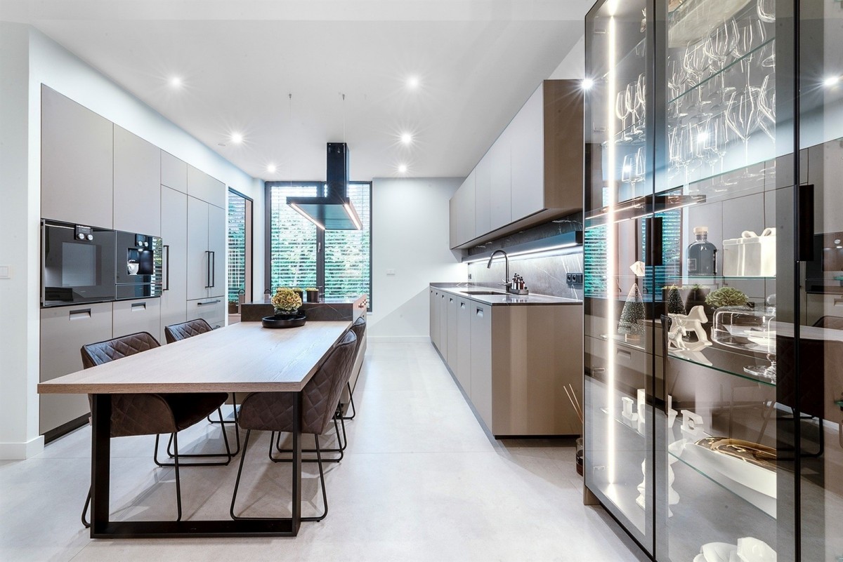 Materiały, którymi wyposażono nieruchomość to światowej klasy, naturalne surowce. Wszystkie zabudowy wykonano na zamówienie u najlepszych lokalnych stolarzy i rzemieślników. Kuchnia to dzieło włoskiego producenta ArcLinea z osprzętem Gaggenau a wysokie i zlicowane ze ścianami drzwi pochodzą od firmy Lualdi.