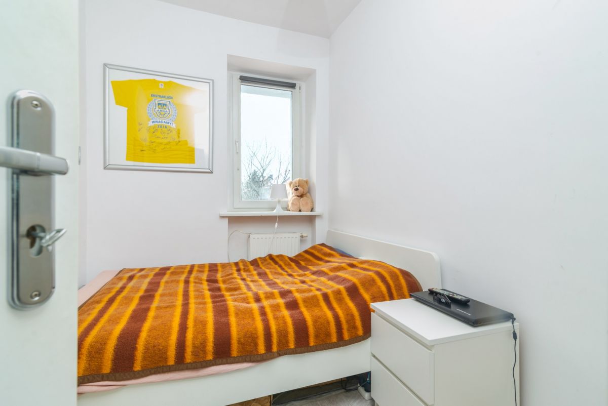 Do mieszkania przynależy słoneczny taras z bezpośrednim zejściem do ogrodu. Część działki została zaadaptowana na dwa prywatne miejsca parkingowe z wjazdem przez elektryczną bramę od strony ulicy. Czynsz administracyjny wynosi około 560 zł miesięcznie, do którego należy doliczyć opłaty eksploatacyjne.
