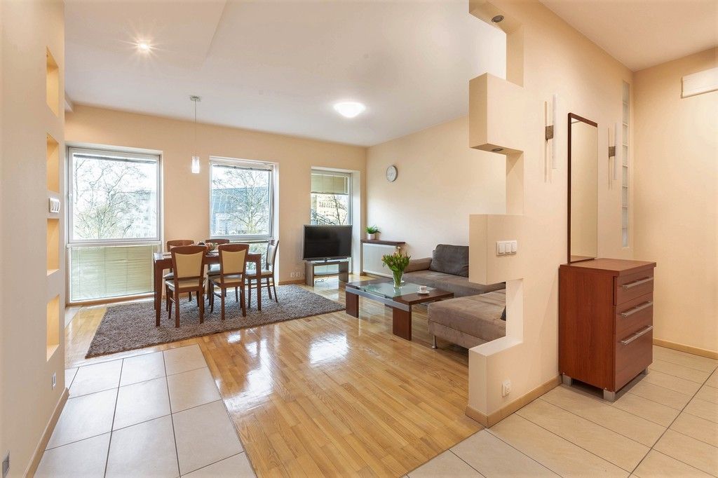 – duży salon z wydzieloną częścią wypoczynkową, kuchenną i jadalnią (pierwotnie osobna kuchnia z oknem i salon z 2 oknami, można łatwo przywrócić ten układ)