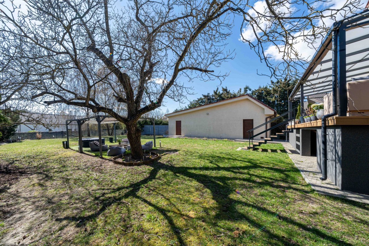 Dom o powierzchni użytkowej ok. 230 m2 i drugi domek ok. 50 m2, wybudowany w 2012 roku, usytuowany na dużej działce o powierzchni 1244 m2.