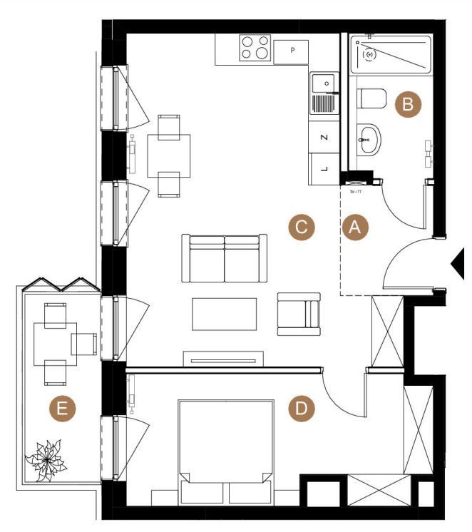 living room + kitchenette 26.85m2