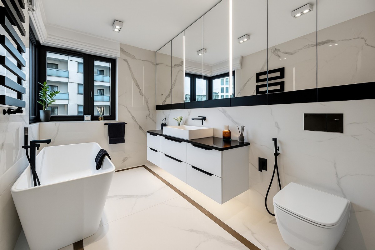 • Mieszkanie usytuowane jest w samym sercu Woli – dzielnicy słynącej z doskonałej komunikacji, oraz licznych atrakcji kulturalnych. To idealne miejsce dla osób, które chcą łączyć wygodę miejskiego życia z luksusem prywatnej przestrzeni.