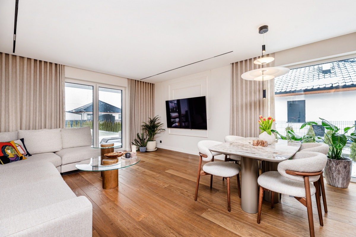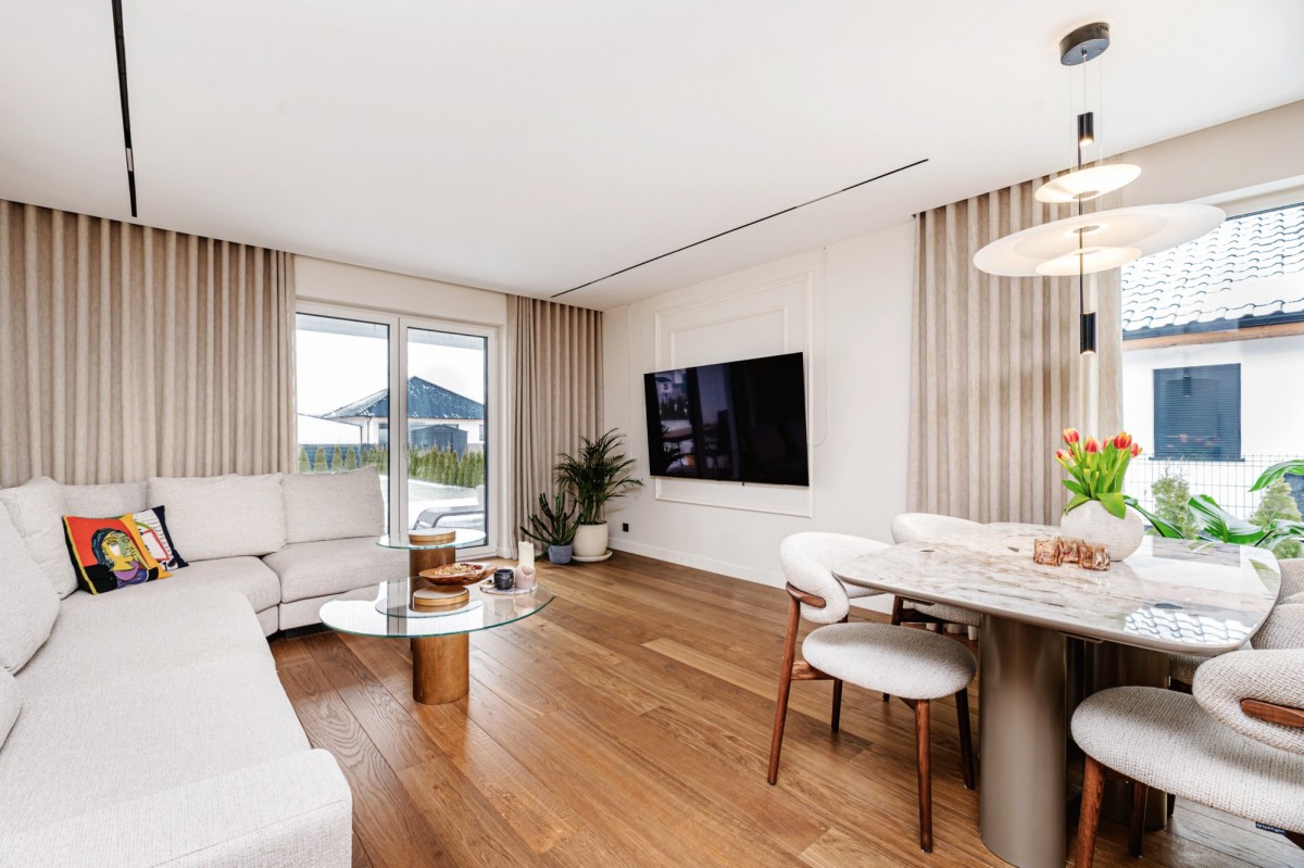 * Wnętrze: Przestronna strefa dzienna, przeszklenia i ekspozycja na trzy strony świata zapewniająca doświetlenie.