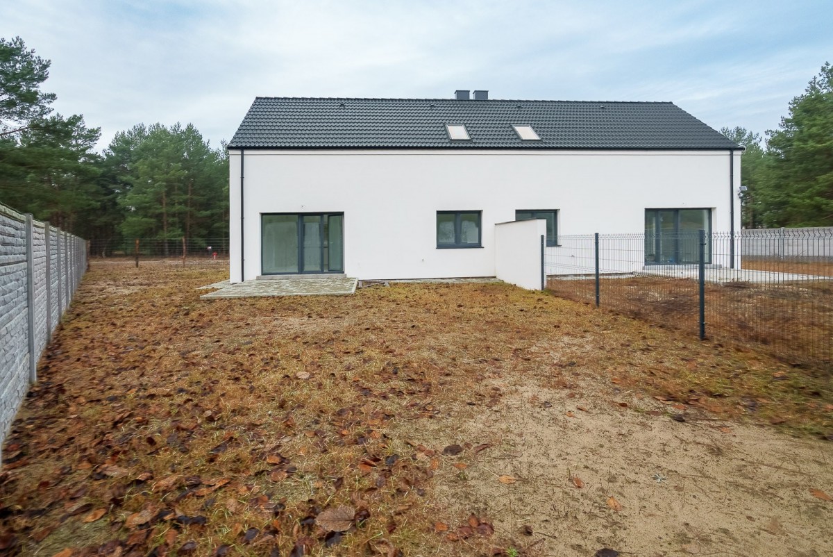 Nieruchomość położona jest w cichej uliczce w niedalekiej odległości od głównej drogi asfaltowej. Dom jednorodzinny o powierzchni całkowitej 84,88 m2 leży na działce o powierzchni 350m2 i został wybudowany w 2025 roku. Składa się z 5 pokoi, 2 łazienek, aneksu kuchennego oraz pomieszczenia gospodarczego. Łazienka na parterze została wykończona na gotowo, jednak z uwagi na zmianę planów życiowych właściciele są zmuszeni do sprzedaży przedmiotowej nieruchomości.