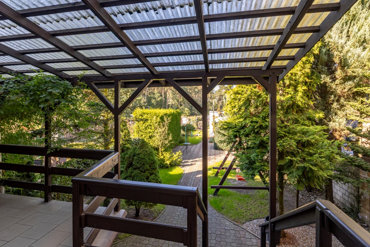 Dom znajduje się w kameralnym osiedlu graniczącym bezpośrednio z lasem. To ciche i bezpieczne miejsce z nową, asfaltową drogą i oświetleniem ulicznym. Minimalny ruch samochodowy sprawia, że okolica sprzyja rodzinom z dziećmi, a bliskość lasu i jeziora zachęca do spacerów, aktywności na świeżym powietrzu i codziennego relaksu.