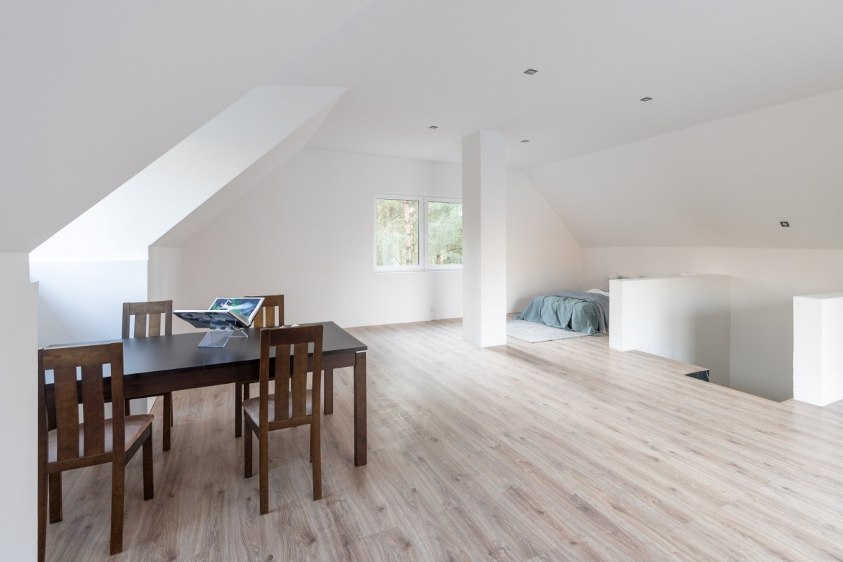 • Duża, otwarta przestrzeń — możliwość wydzielenia dwóch komfortowych pokoi