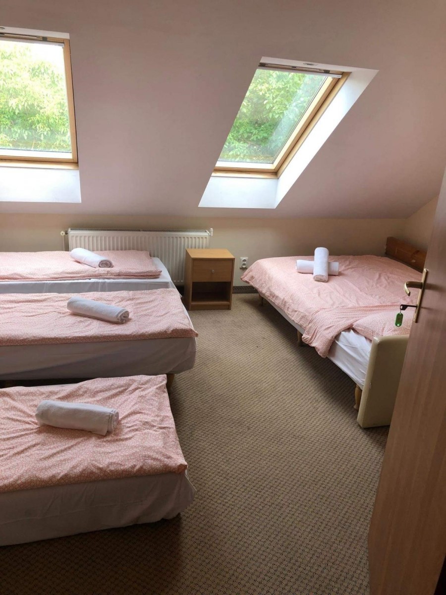 Dom weselny z salą na 100 osób, z 7 pokojami i częścią wspólną dla gości na górze, zapleczem kuchennym na dole i w podpiwniczeniu z osobnym wyjściem.