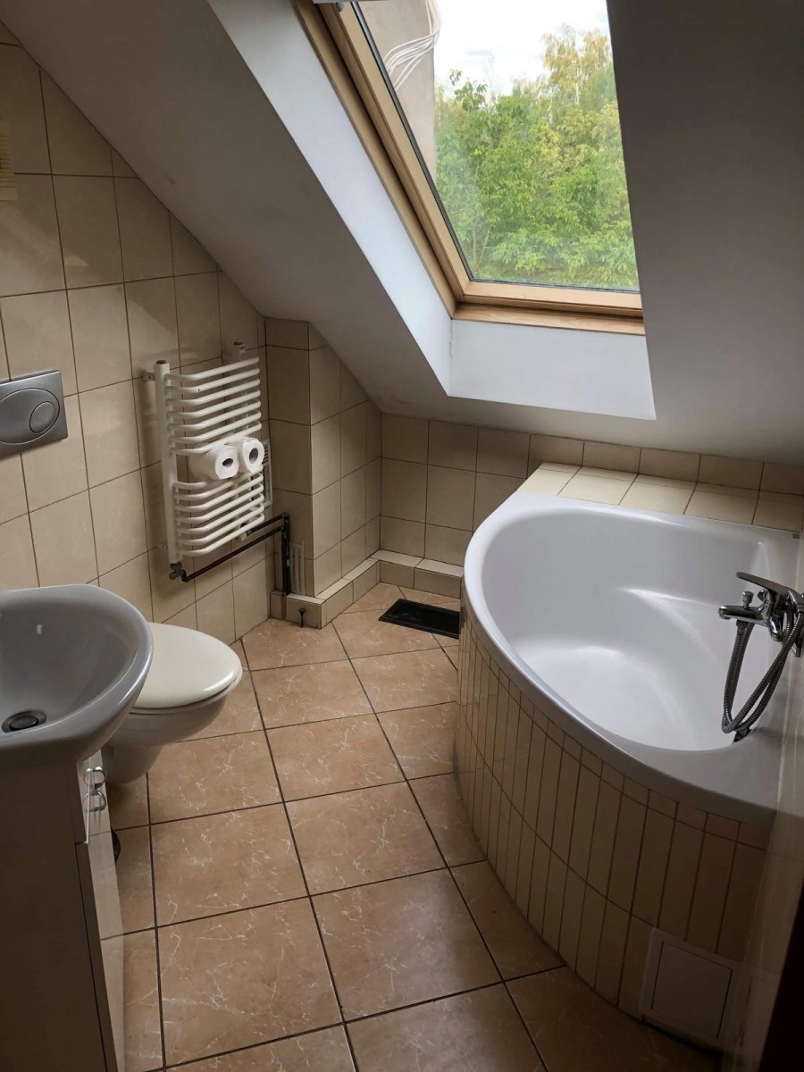 Pensjonat lub dom mieszkalny, na dole kuchnia, salon/jadalnia, biuro/schowek z oszkloną oranżerią, zaaranżowaną na salon, z pięcioma pokojami na piętrze, balkonem z dwóch z nich i strychem z dwoma pomieszczeniami.
