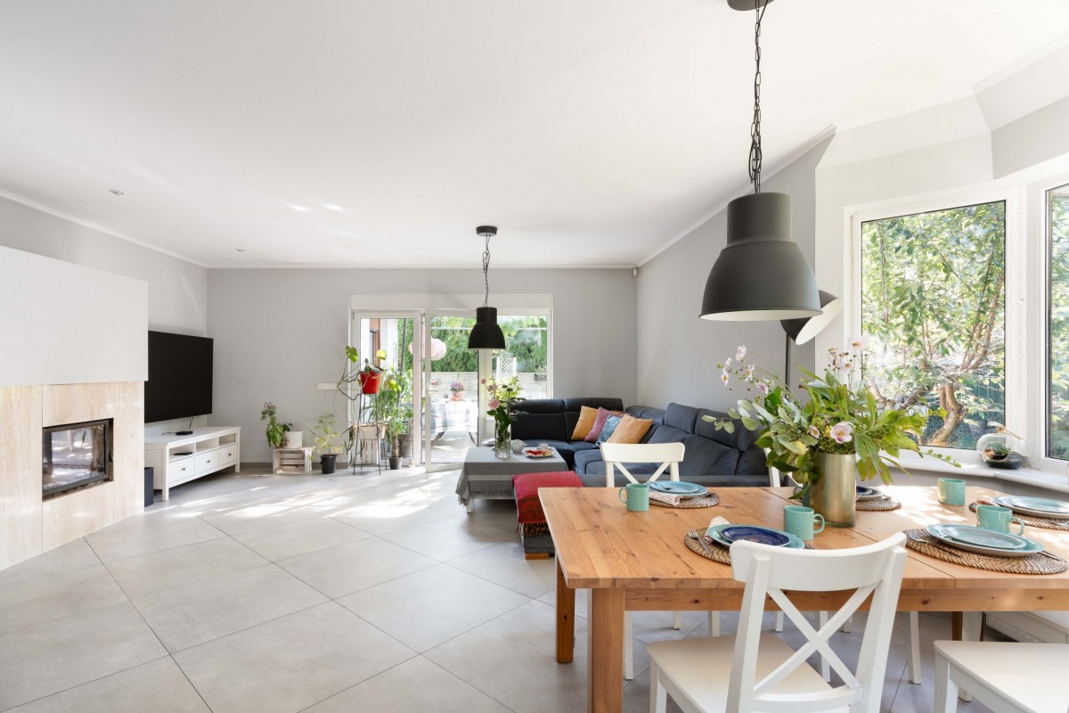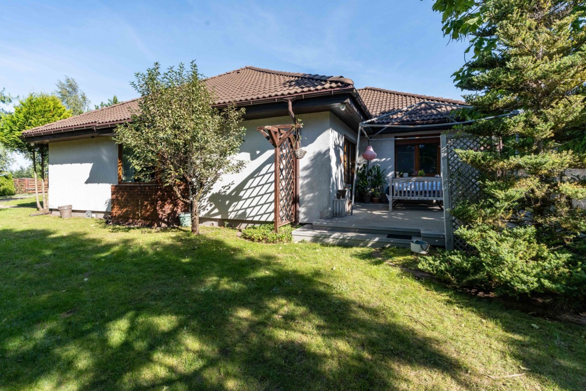 Parterowy dom otoczony zielenią w granicy Poznania, gmina Komorniki.
