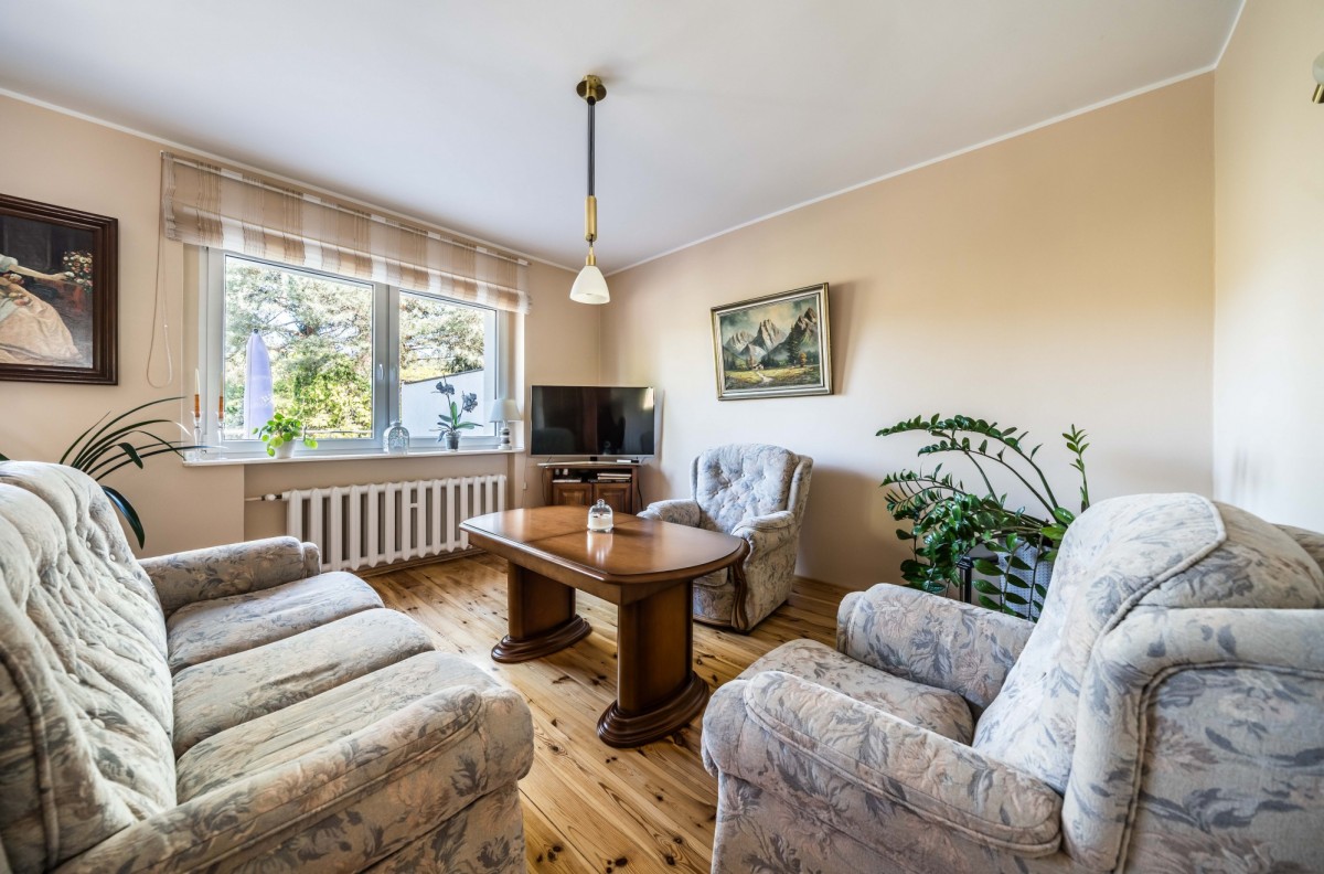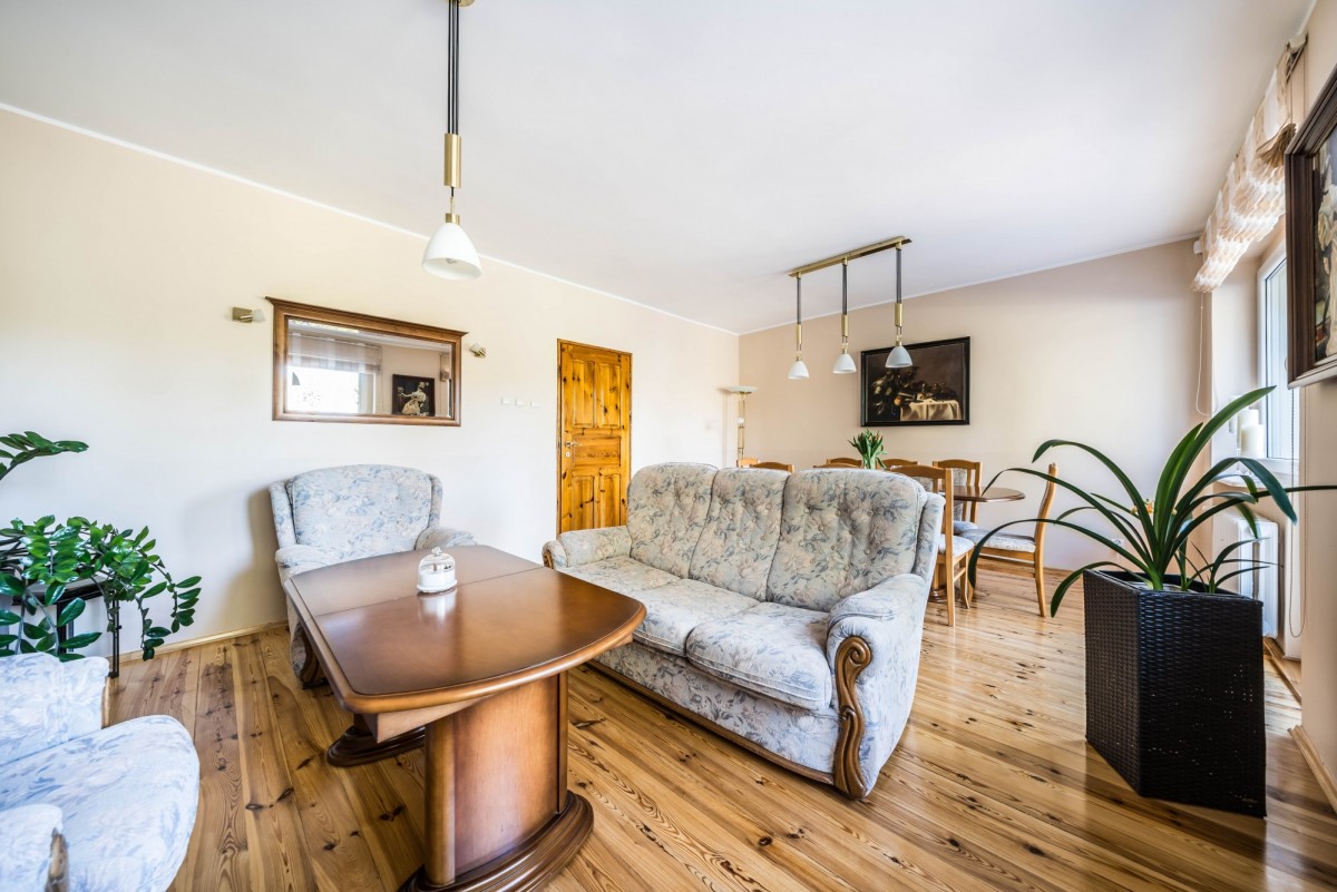 Dom mieści się na ulicy Soroki i składa się z 3 kondygnacji. W 2020 roku dom przeszedł gruntowny remont – poniżej szczegółowe informacje. Na parterze znajduje się duży przedsionek, garaż w bryle budynku, pralnia oraz blisko 40 m2 pomieszczenie, które posiada dodatkowe wyjście od zewnątrz. Może ono stanowić doskonałe miejsce na biuro, gabinet lekarski lub po prostu służyć jako dodatkowa przestrzeń do składowania. Na I kondygnacji znajduje się salon z wyjściem na taras, sypialnia, kuchnia oraz łazienka z prysznicem. Na II kondygnacji znajduję się dodatkowa kuchnia ( można ją zlikwidować i przywrócić do pierwotnej postaci pokoju), 3 pokoje oraz łazienka.