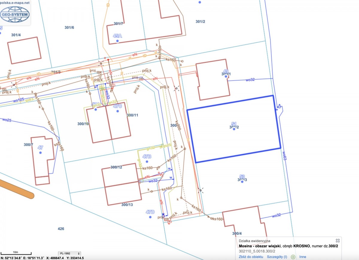 Lokalizacja: Krosno, gmina Mosina, ul. Sosnowa, działka nr 300/2.