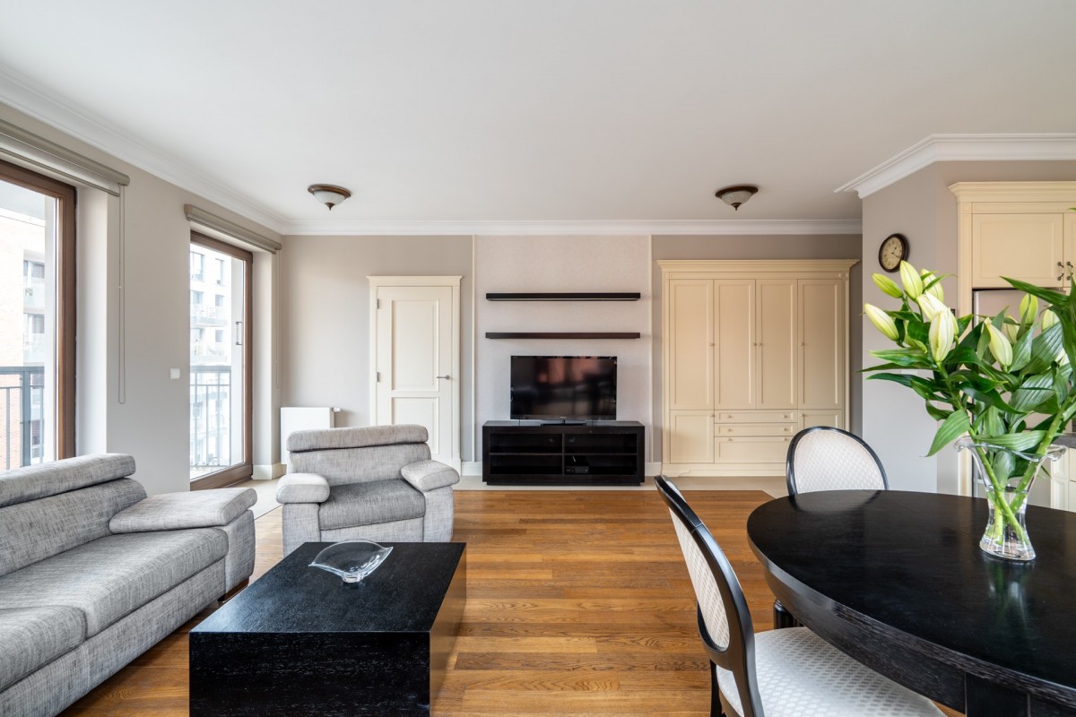 Apartament został urządzony z dużym wyczuciem estetyki i dbałością o detale. Klasyczne wnętrza, wysokiej jakości materiały oraz ponadczasowy styl czynią tę ofertę idealną propozycją dla najbardziej wymagających klientów, ceniących prestiż, komfort oraz wyjątkową lokalizację.