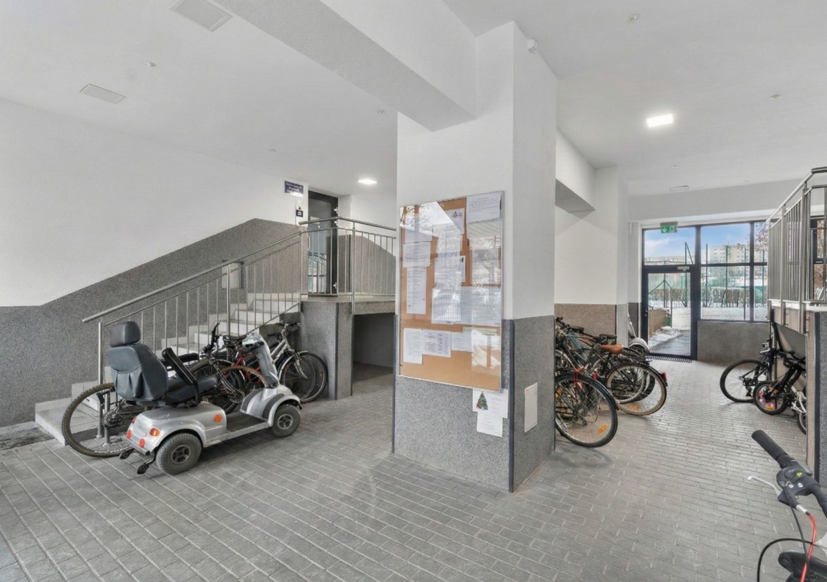 BUDYNEK: Zadbany blok, który przeszedł niezbędne modernizacje. Budynek znajduje się na ogrodzonym terenie, co gwarantuje spokój. Unikatowym udogodnieniem jest duża, przeszklona klatka schodowa na przechowywanie rowerów i sprzętu dostępna wyłącznie dla mieszkańców.