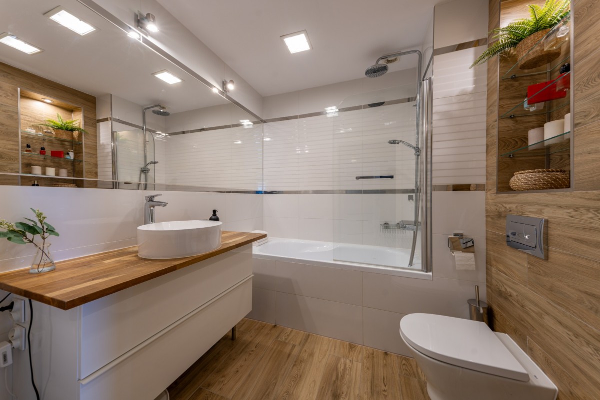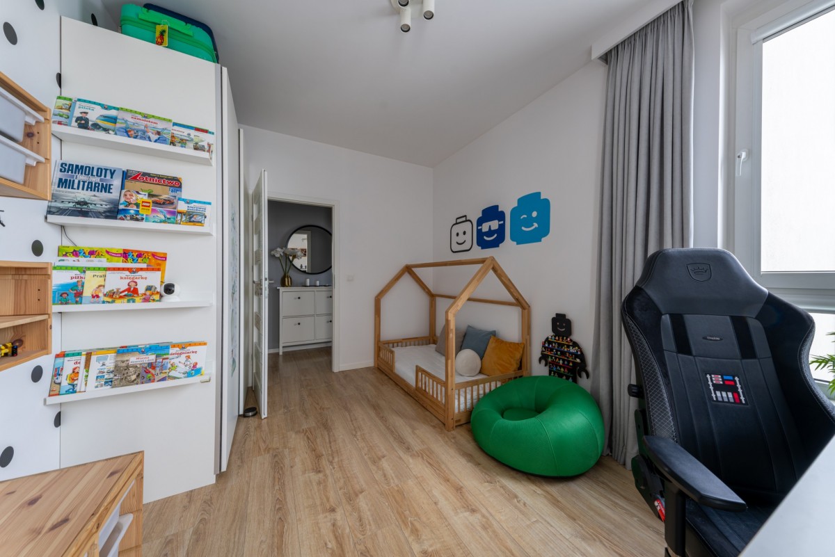 In the bedroom and on the second balcony adjoining it, you can admire stunning sunsets. The children’s room/home office tells yet another story. It’s a space for studying, remote work (featuring a height-adjustable desk), and relaxation. The bathroom, with a bathtub and rainfall shower, can transform an ordinary evening into a home SPA experience. The walk-in wardrobe, which also serves as a laundry room, helps keep daily life organized and offers the possibility of creating a second bathroom in the future – ready for new needs and plans.