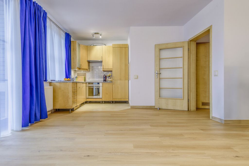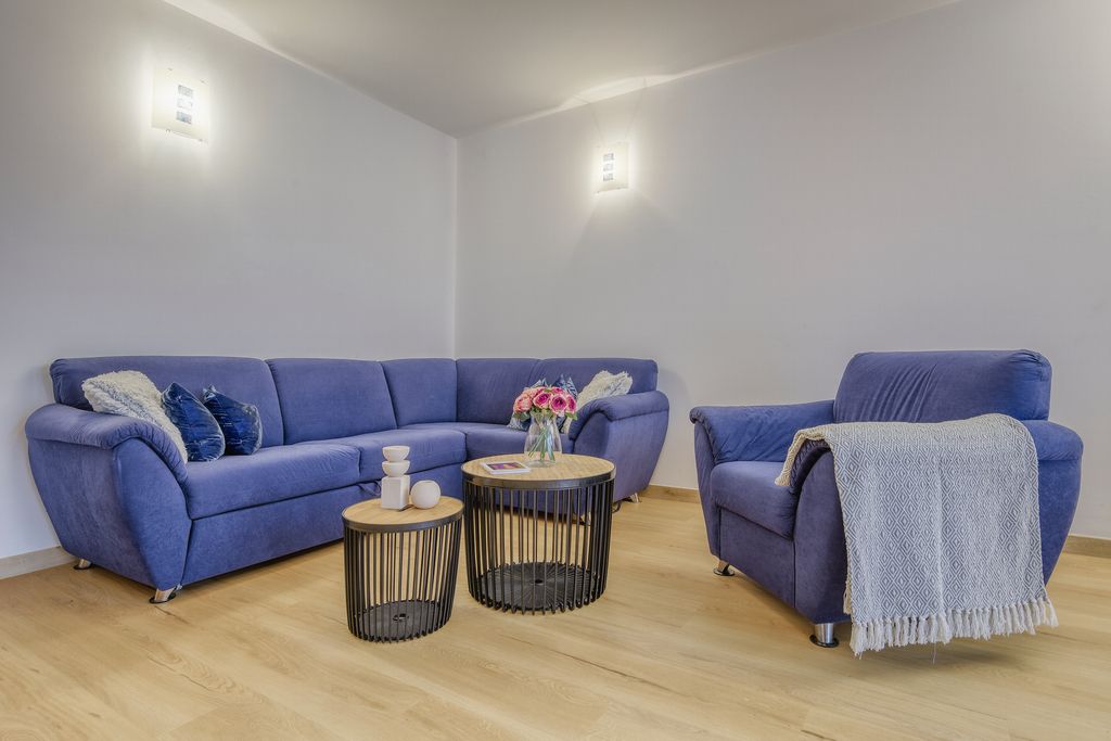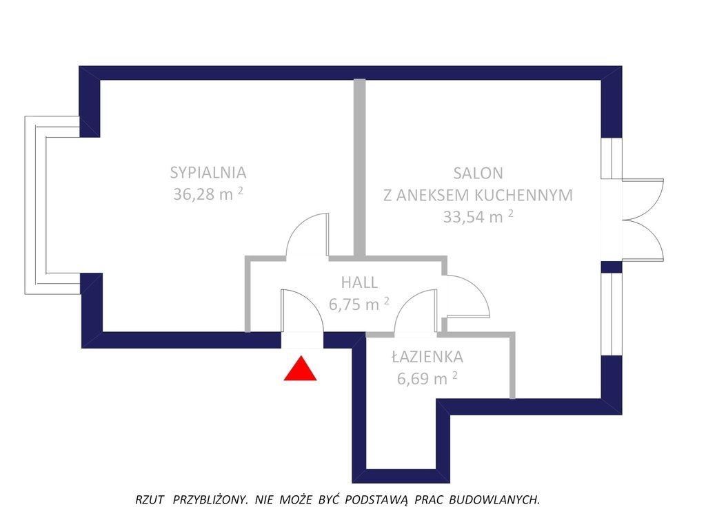 Opis mieszkania: „pełne powietrza” bardzo przestronne dwupokojowe mieszkanie, składające się z salonu z aneksem kuchennym o powierzchni 33,54 m2 z wyjściem na 25 m2 taras i do 50 m2 ogrodu.