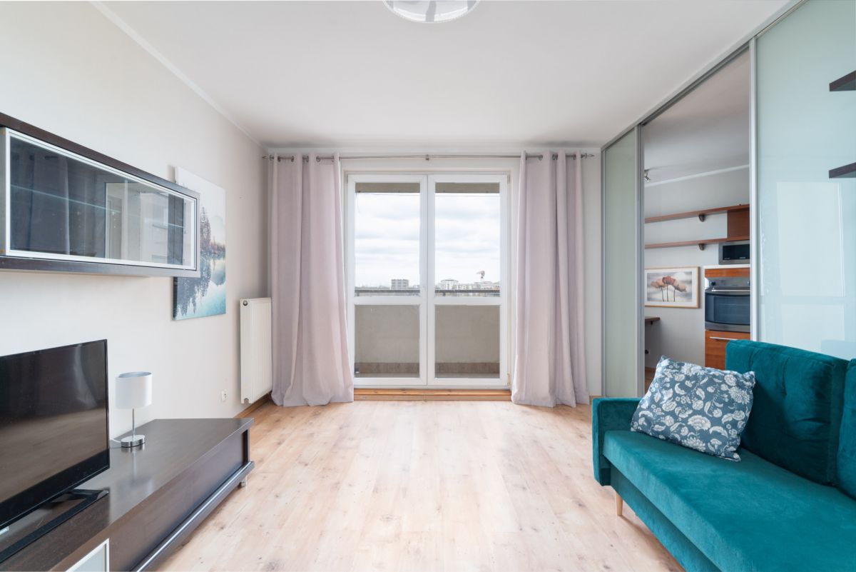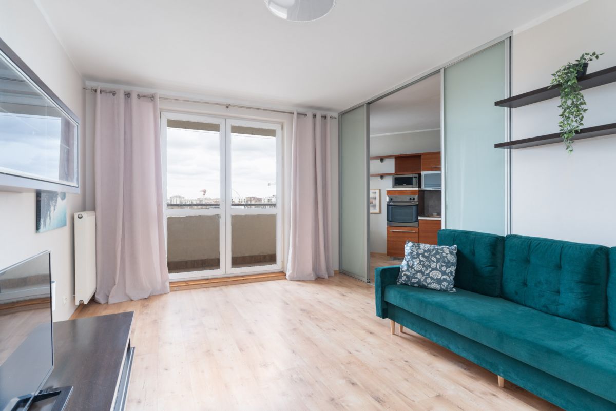 Ta jasna kawalerka na 7 piętrze to idealna propozycja dla singla, pary lub inwestora.