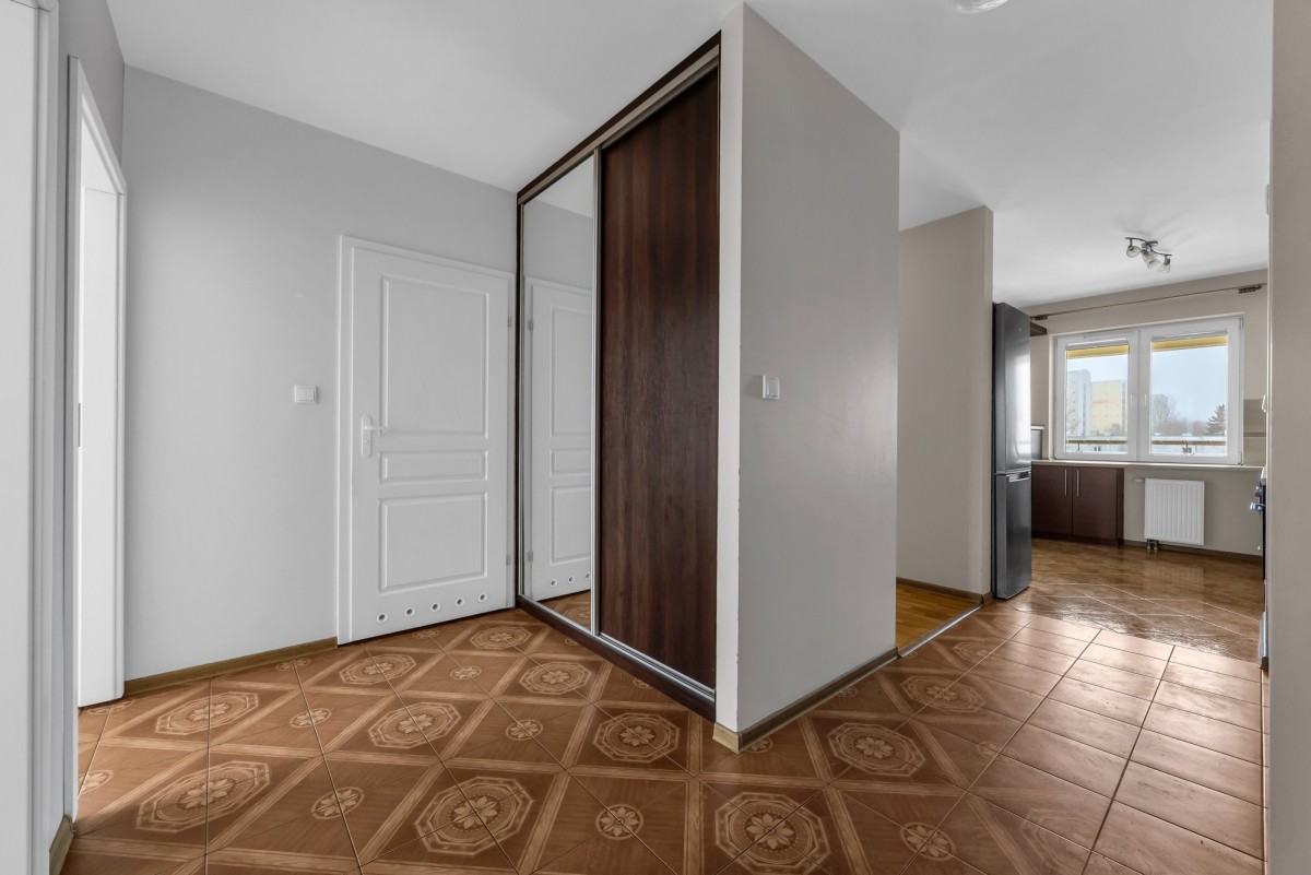 duży przedpokój z pojemną szafą w zabudowie,