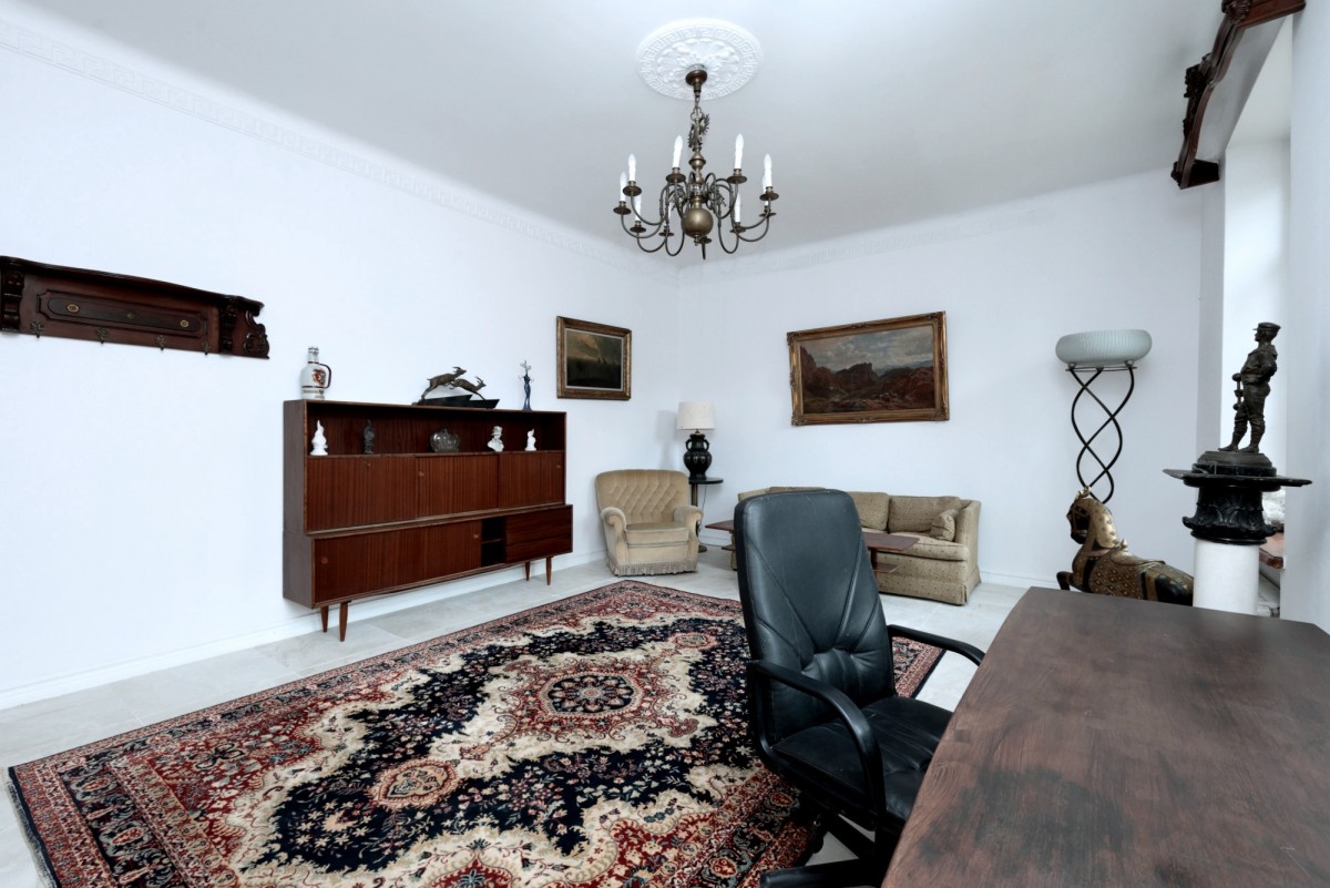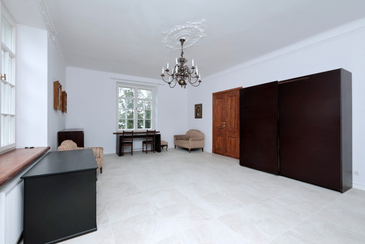 Parter – ok.120 m2 (wysokość – 3,80m): reprezentacyjny hol 15m2 m2, salon – 33,9 m2, pokój – 36,6 m2, widna kuchnia-7,9m2, wc- 2,5m2 oraz samodzielna kawalerka ok 17m2