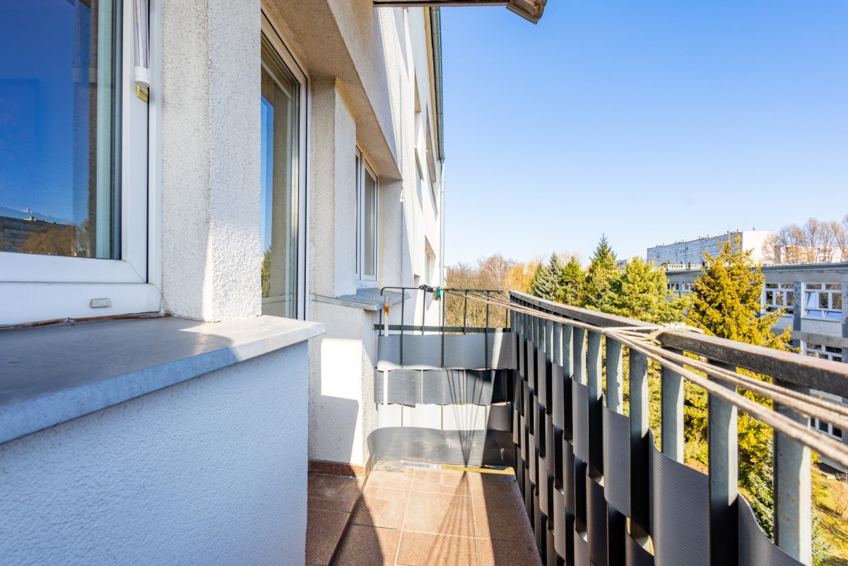Dodatkową przestrzeń stanowi balkon oraz komórka lokatorska przynależna do mieszkania.