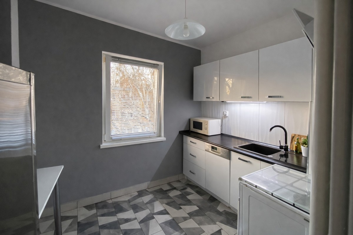 – osobnej kuchni z oknem, w pełni wyposażonej w sprzęt AGD (lodówka, piekarnik, zmywarka, okap, mikrofala),