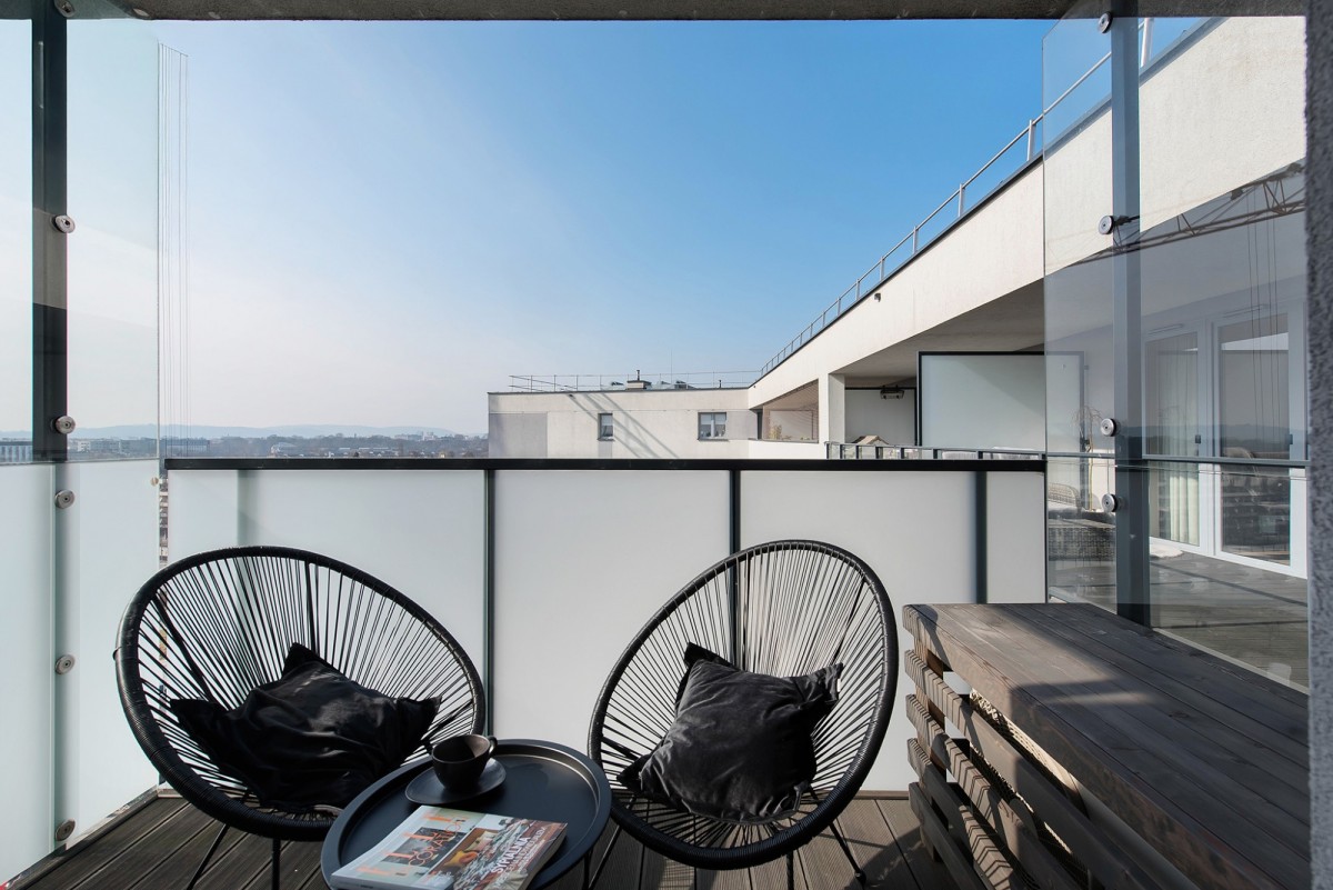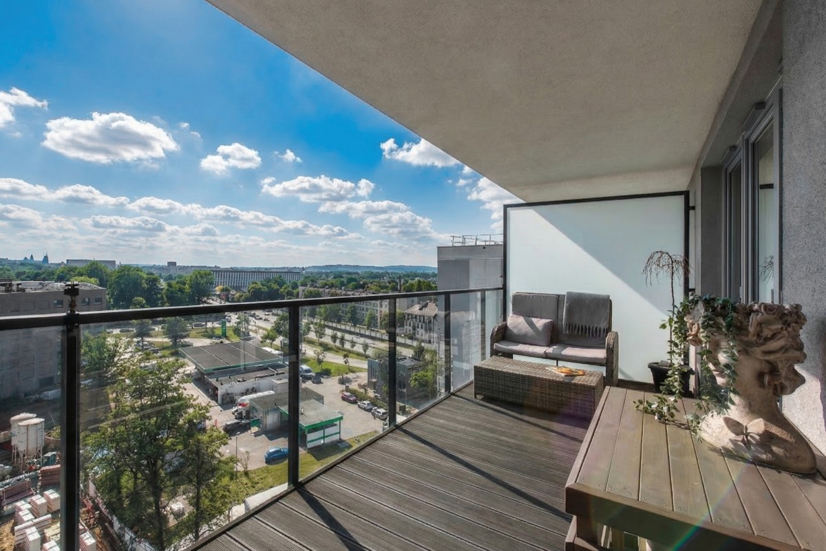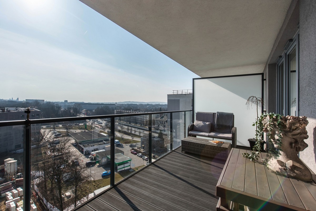 Balkon wyłożony jest specjalną deską syberyjską, tak samo zabudowana jest klimatyzacja.