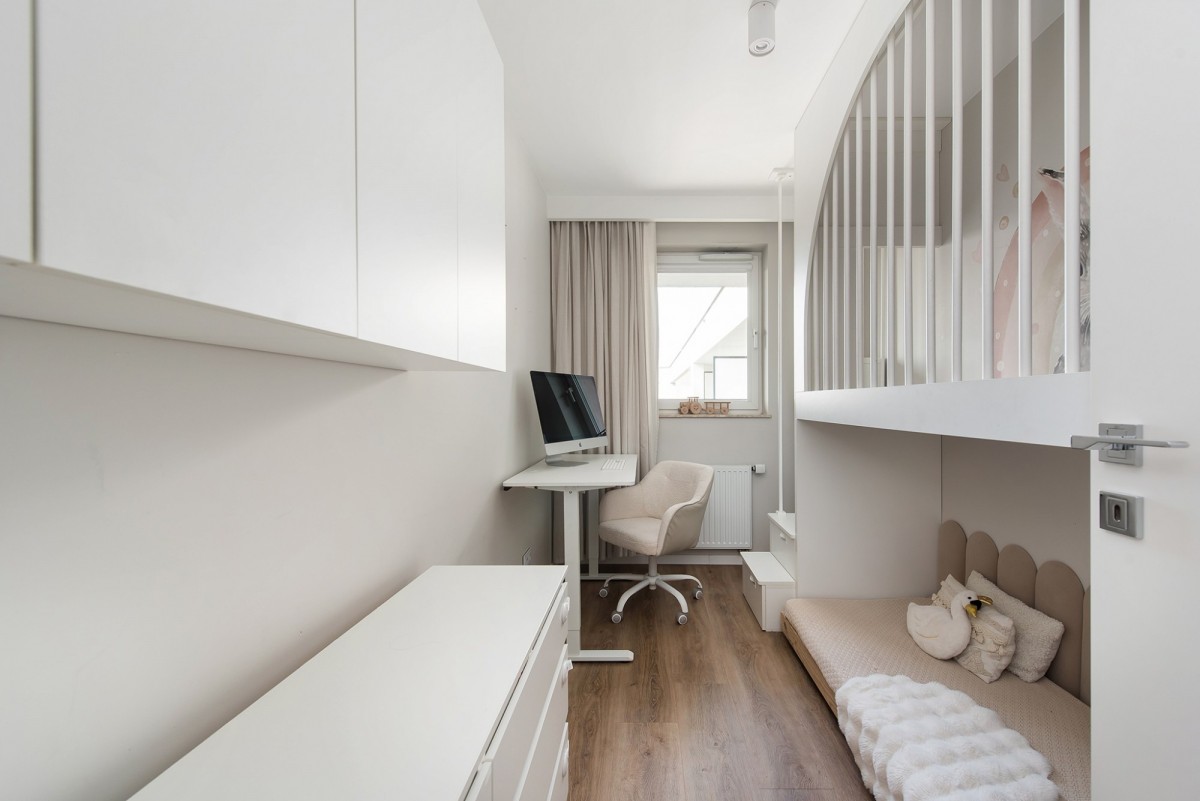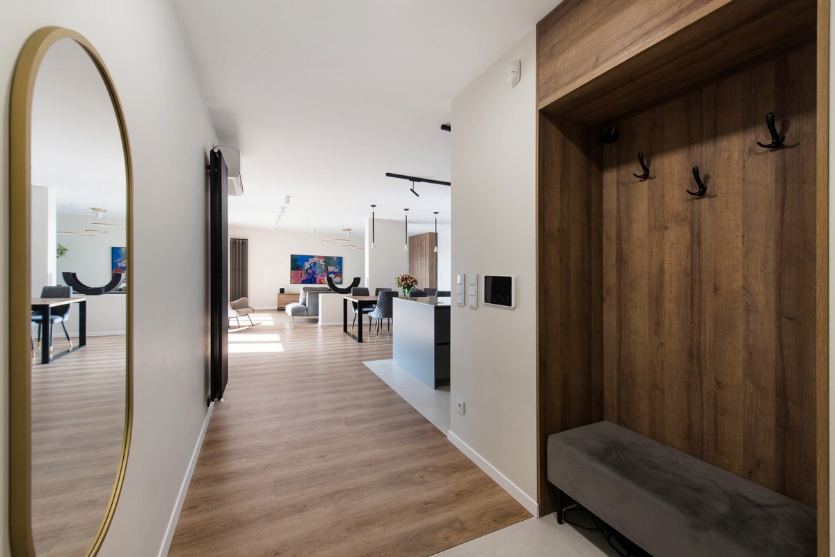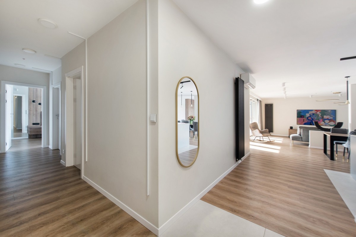 Mieszkanie jest wyposażone w system Apple Home. Sterowanie odbywa się z iPad/iPhone, a także głosowo poprzez system głośników HomePod w łazienkach, sypialni oraz salonie.