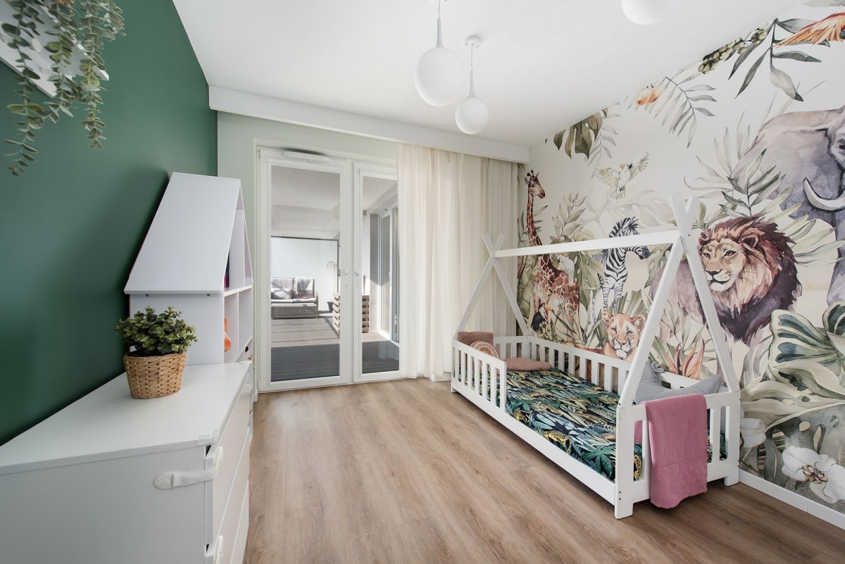 Podłogi wyłożone są panelami winylowymi.