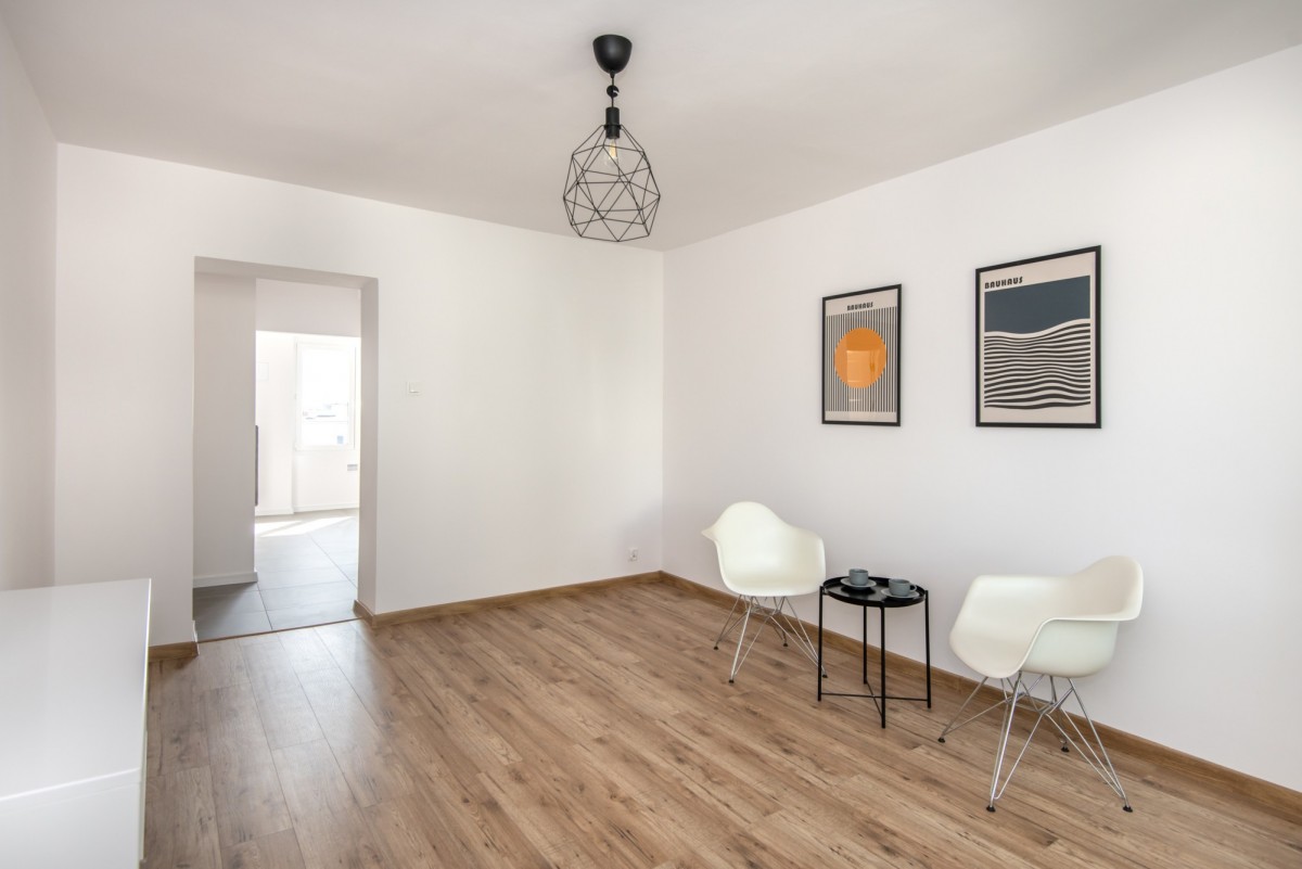 Lokal o powierzchni 46,15 m² znajduje się na 3. piętrze niskiego bloku i został kompleksowo odnowiony – od tego czasu nie był jeszcze zamieszkały. Wszystko jest świeże, czyste i pachnące nowością.