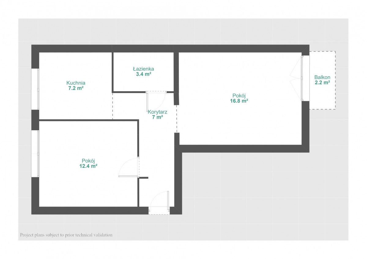 Poznań, ul. Czechosłowacka | 46,15 m² | 2 pokoje + osobna kuchnia | balkon