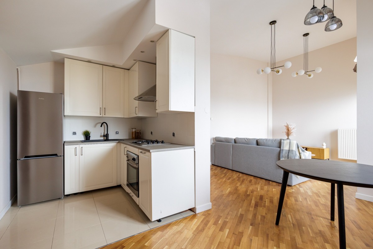 Hamilton May prezentuje ofertę najmu przestronnego, jasnego mieszkania z balkonem, położonego na ostatnim piętrze budynku na Warszawskim Targówku.