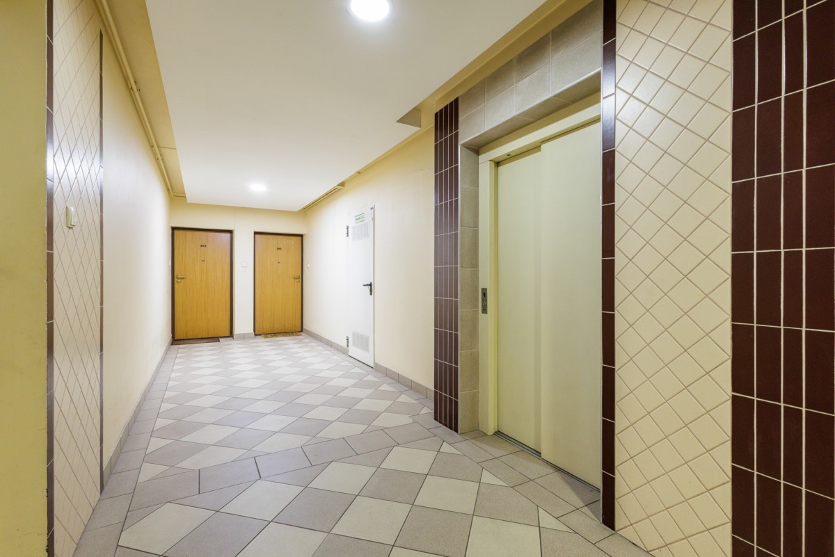 Mieszkanie znajduje się w zadbanym budynku mieszkalnym z windą. Ostatnie piętro gwarantuje większą prywatność oraz brak sąsiadów nad lokalem. Części wspólne utrzymane są w dobrym stanie.