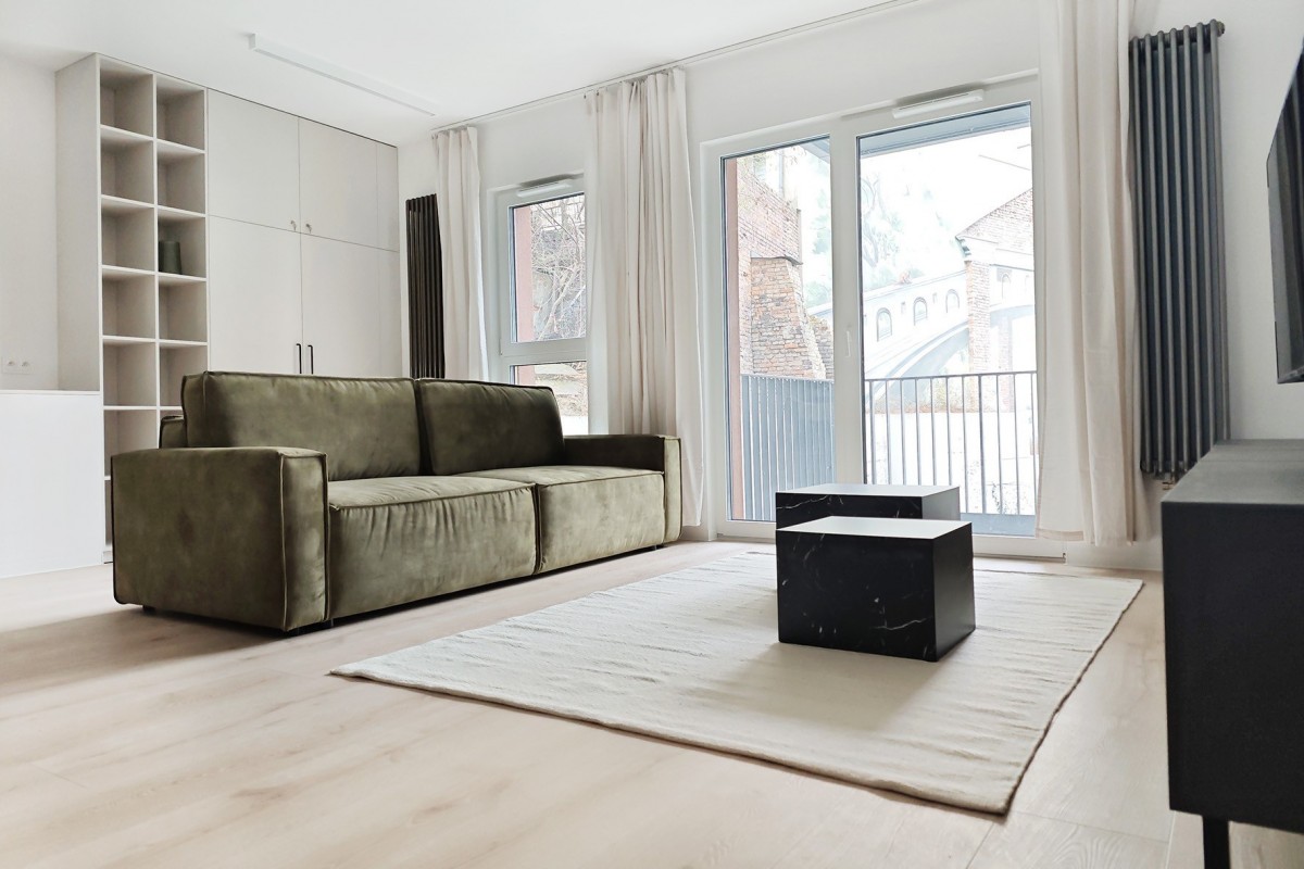 Stylowe mieszkanie o powierzchni 50 m², położone na 4. piętrze w zadbanym budynku z windą. Nieruchomość przeszła generalny remont pod okiem architekta i jest obecnie oferowana jako pierwszy najem. Wnętrza zaprojektowano w duchu nowoczesnej elegancji, łącząc klasyczne elementy (parkiet w jodełkę, sztukaterie) z najwyższym standardem wyposażenia.