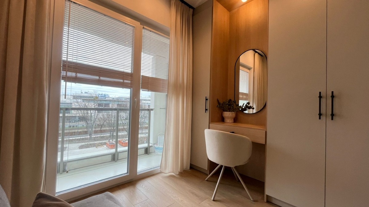 Mieszkanie jest nowe – pierwszy najem, zaprojektowane przez architekta wnętrz z dbałością o funkcjonalność i komfort codziennego życia.