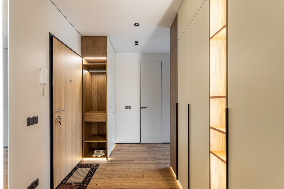 Wnętrze zostało wykończone w eleganckim, spójnym stylu, z dużą dbałością o detale i jakość materiałów: sufit napinany z systemem oświetlenia szynowego oraz designerskie karnisze marki Maytoni nadają przestrzeni nowoczesny, minimalistyczny charakter, zabudowa meblowa wykonana z płyt Egger z frontami MDF oraz wysokiej klasy okuciami Blum, blat kuchenny oraz stół z wytrzymałej płyty kompaktowej HPL – odpornej na wilgoć i uszkodzenia mechaniczne, drzwi wewnętrzne w systemie ukrytym, w aluminiowych ościeżnicach z włoskimi zawiasami, podkreślające nowoczesną estetykę,podłogi wykończone panelami Swiss Krono z designerską listwą sprowadzaną z Belgii. Mieszkanie jest w pełni wyposażone w sprzęt AGD renomowanych marek: Samsung, Grundig, Bosch oraz Electrolux. W cenie nieruchomości pozostaje również telewizor Samsung 80”. Do mieszkania przynależy dodatkowo płatne miejsce postojowe w garażu podziemnym.