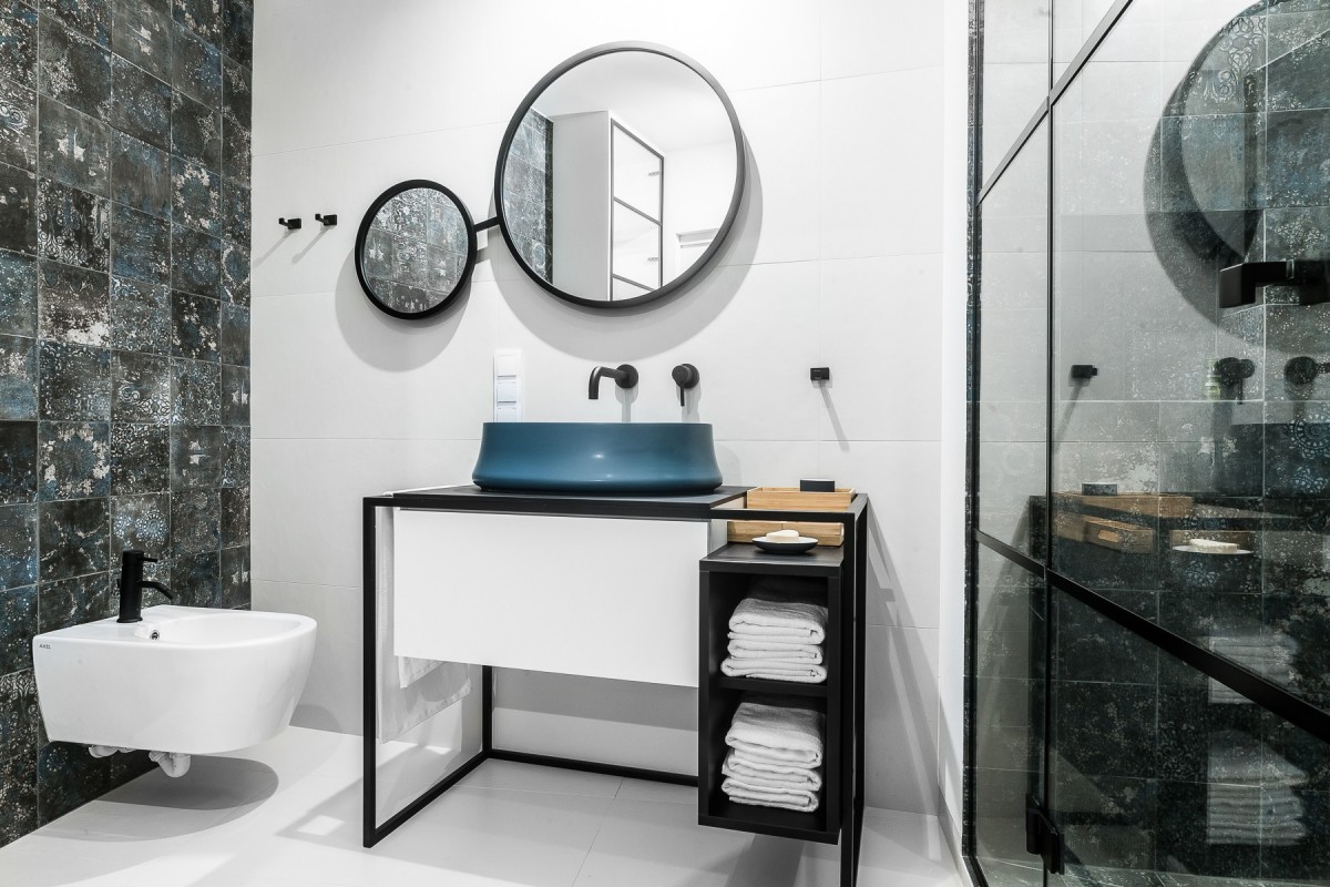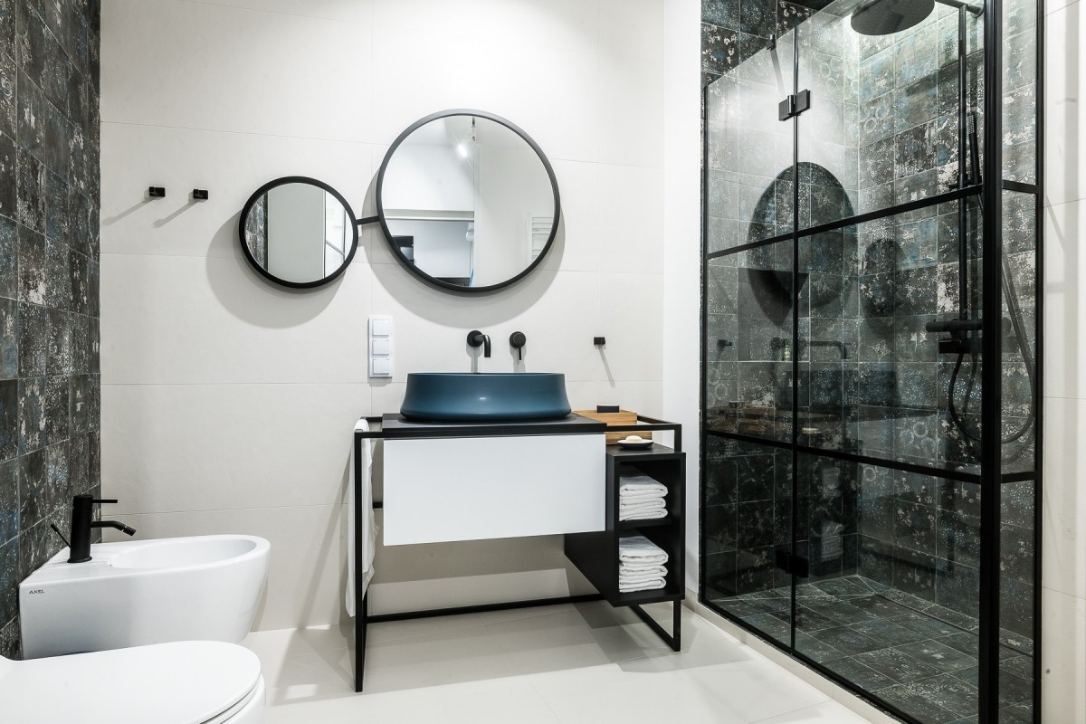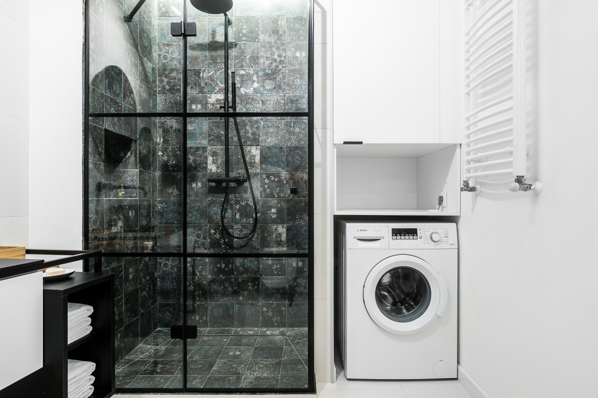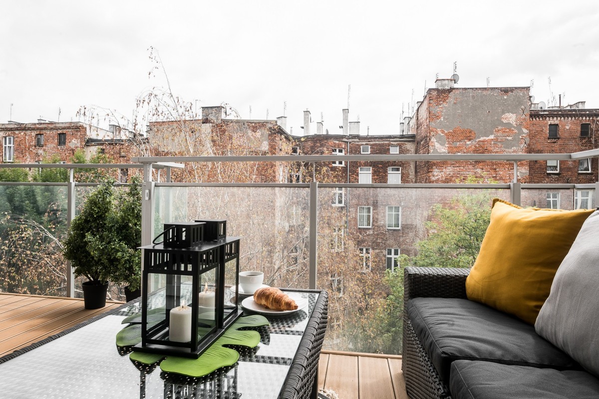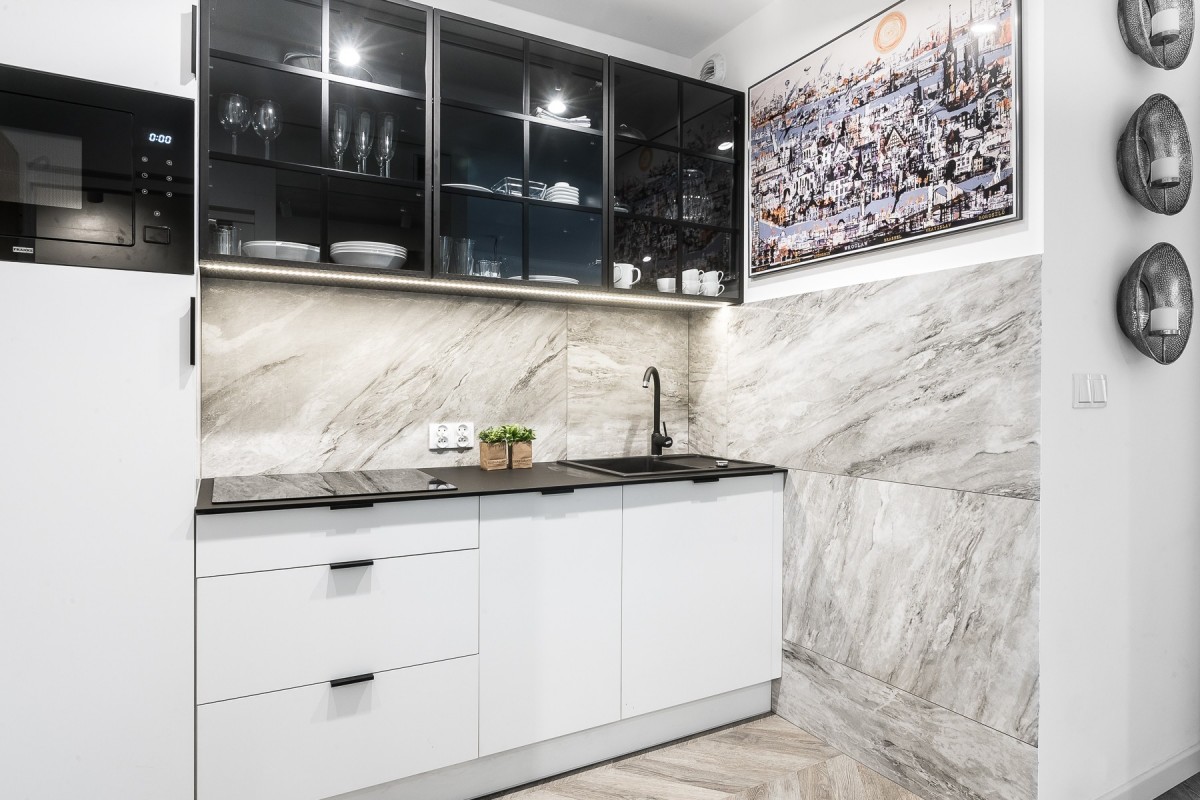 Apartament o wschodniej ekspozycji, zaprojektowany przez architekta łączy nowoczesną elegancję z elementami glamour i postindustrialnego stylu. Wnętrze wykończono szlachetnymi materiałami — aksamitem, szkłem i akcentami w odcieniach beżu, czerni, bieli, bordo i złota. Oryginalny charakter podkreślają dekoracyjne oświetlenie, szklane ściany oraz industrialne przeszklenia, które optycznie powiększają przestrzeń. Dodatkowo w apartamencie znajdują się pojemne zabudowane szafy zapewniające komfort przechowywania i wygodę na co dzień.