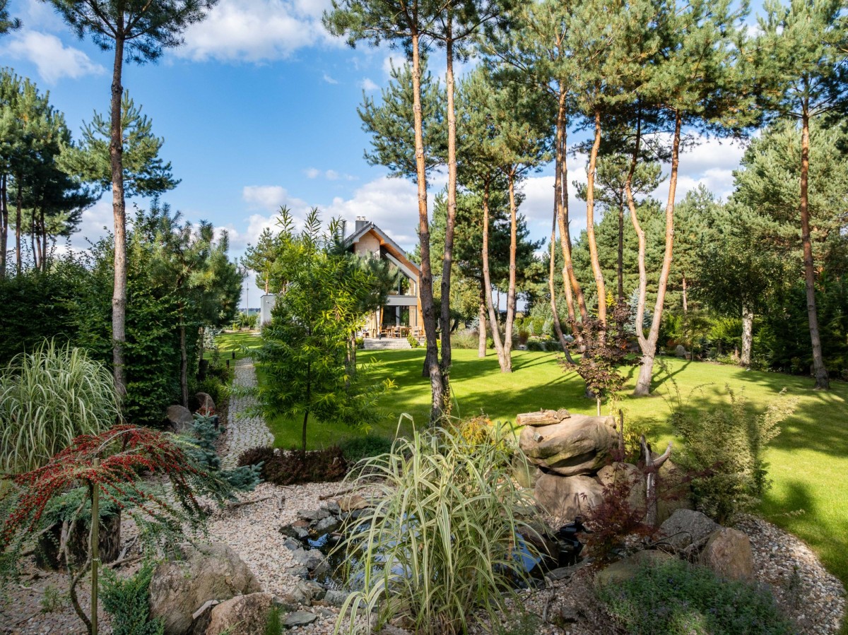 Nowoczesny, stylowy i komfortowy dom na dużej, pięknie zagospodarowanej działce z licznymi nasadzeniami. Przestrzeń, prywatność i prestiż!
