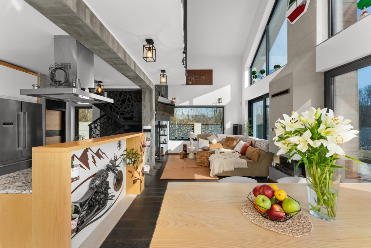 – duża strefa dzienna połączona z kuchnia