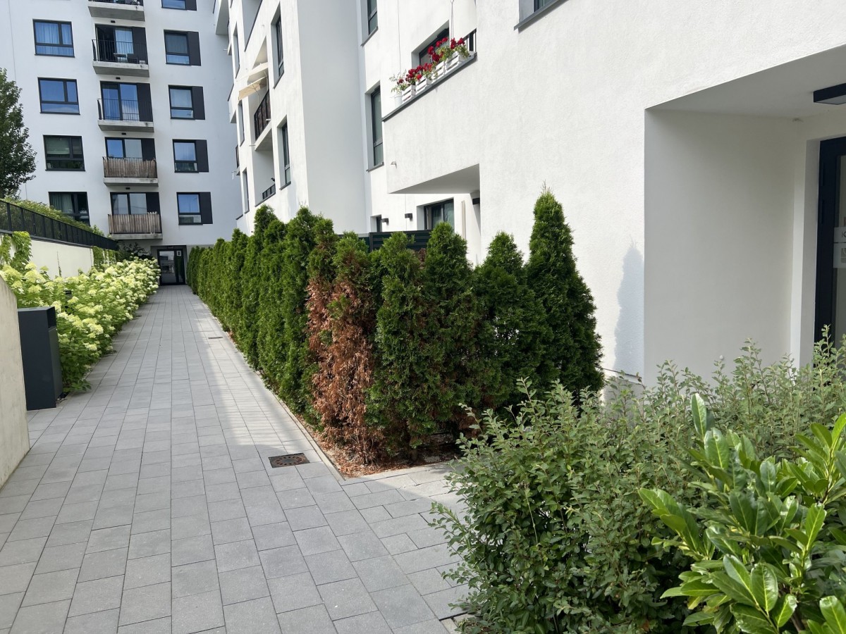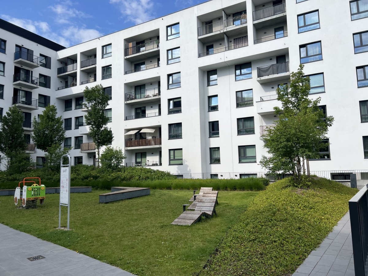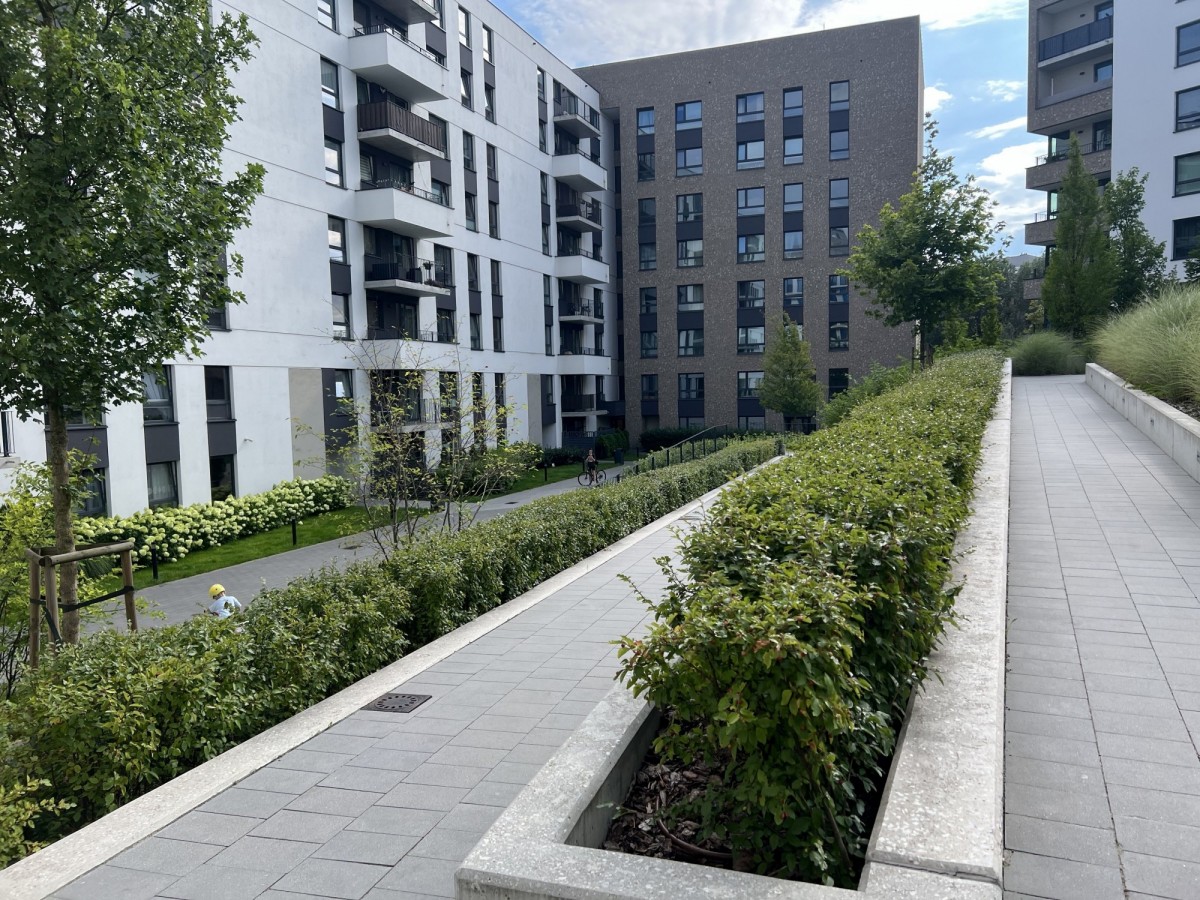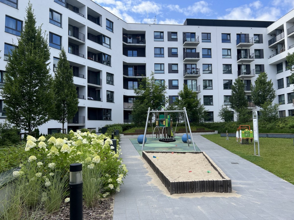 Osiedle jest monitorowane i chronione, co zapewnia mieszkańcom spokój i bezpieczeństwo. Lokalizacja gwarantuje świetny dostęp do infrastruktury miejskiej – blisko sklepy, szkoły, przystanki komunikacji miejskiej i tereny zielone.