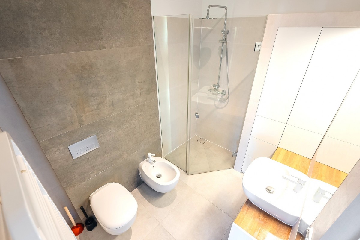 Łazienka z prysznicem i bidetem oraz z toaletą